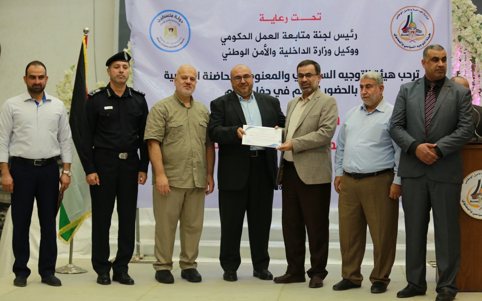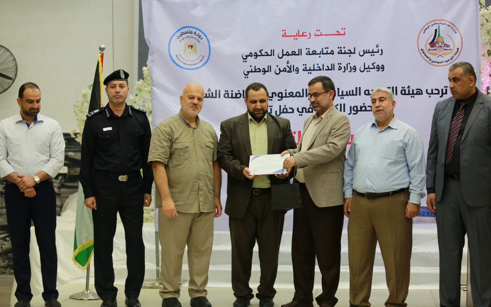 وحضر الحفل كل من أ. محمد الفرا نائب رئيس متابعة العمل الحكومي، واللواء ناصر مصلح وكيل وزارة الداخلية والأمن الوطني، ومساعده أ. سامي نوفل، واللواء د. محمود أبو وطفة مدير عام قوى الأمن الداخلي، واللواء محمود صلاح مدير عام الشرطة، والعميد د. محمد الجريسي رئيس هيئة التوجيه السياسي، وم. لؤي عياد مدير دائرة "الحاضنة الشعبية"، إلى جانب عدد من قادة الأجهزة الأمنية والإدارات بالوزارة.