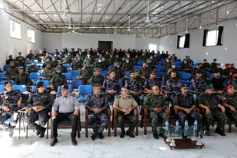 واستعرض العميد النخالة عملية بناء الدورة العسكرية الميدانية بدءاً بإقرارها وبناء خطتها مروراً بإعداد المناهج اللازمة وممارسة عملية التعليم النظري والعملي وصولاً للاختبارات والشهادات والتخريج بعد اجتياز الطلبة لكافة مساقات الدورة.
