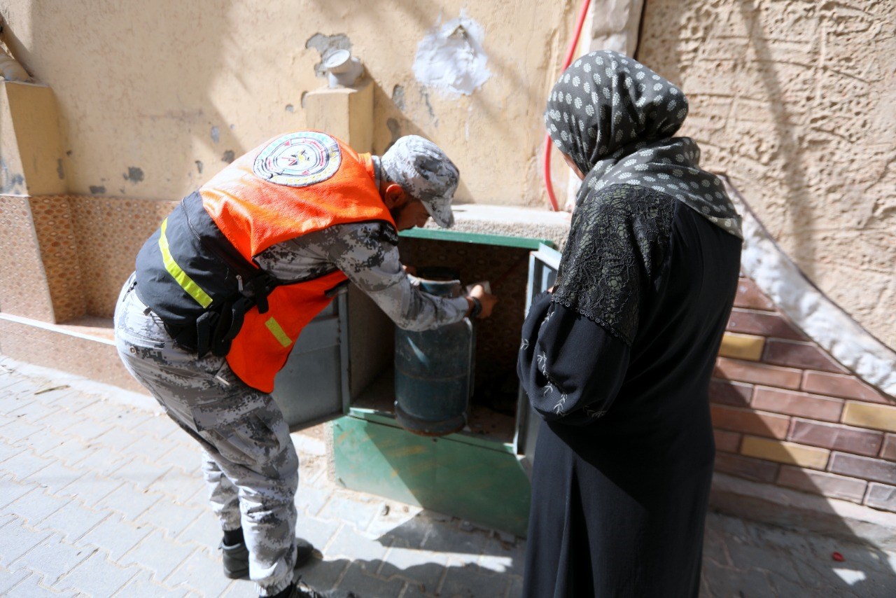 وتفقدت طواقم الدفاع المدني تمديدات أسطوانات الغاز في عدد من منازل المواطني في حي الشجاعية، وقاموا بتغير عدد من تمديدات الغاز التالفة، كما ووجهوا جملة من الإرشادات التوعوية للمواطنين لتفادي المخاطر التي قد تنجم عن الغاز المنزلي.