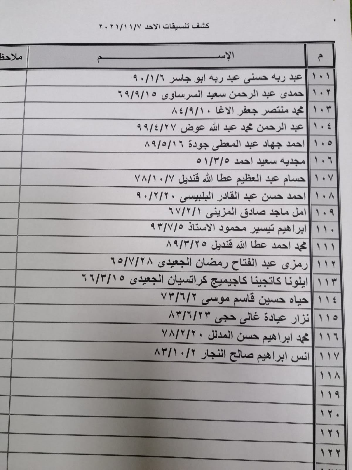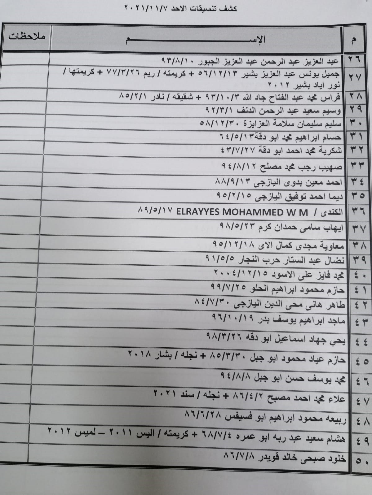 تعلن الهيئة العامة للمعابر والحدود بوزارة الداخلية والأمن الوطني عن وصول كشف "تنسيقات مصرية" للسفر عبر معبر رفح البري يوم الأحد (7 نوفمبر)، والذين عليهم التوجه لإجراء فحص كورونا الساعة 7 صباح الأحد بمركز شـ.ـهداء رفح الصحي ثم التوجه للصالة الخارجية للمعبر لتسهيل سفرهم.