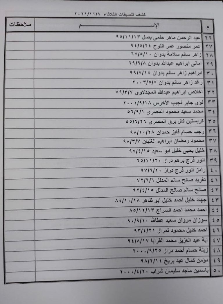 كما عليهم التواجد الساعة 6 صباح الثلاثاء في الصالة الخارجية للمعبر لتسهيل سفرهم.