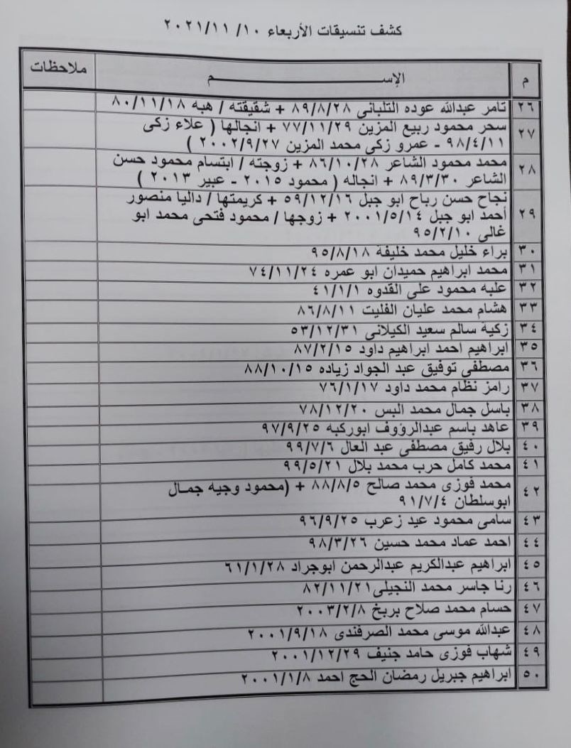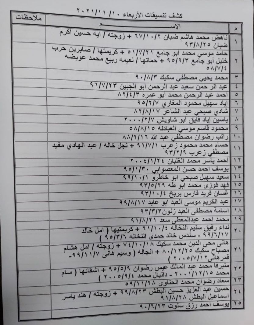 - كما عليهم التواجد الساعة 6 صباح الأربعاء في الصالة الخارجية للمعبر لتسهيل سفرهم.