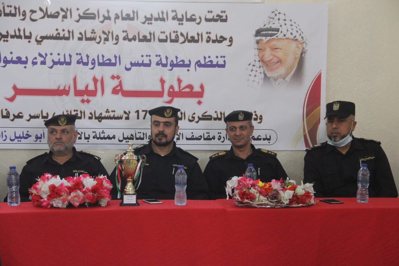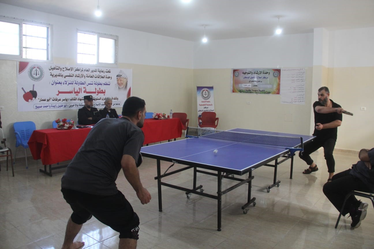 نظمت وحدة العلاقات العامة والإرشاد النفسي بالمديرية العامة لمراكز الإصلاح والتأهيل بوزارة الداخلية بطولة "تنس طاولة" للنزلاء في كافة مراكزها، بعنوان "الرئيس الراحل ياسر عرفات"، في ذكرى رحيله.