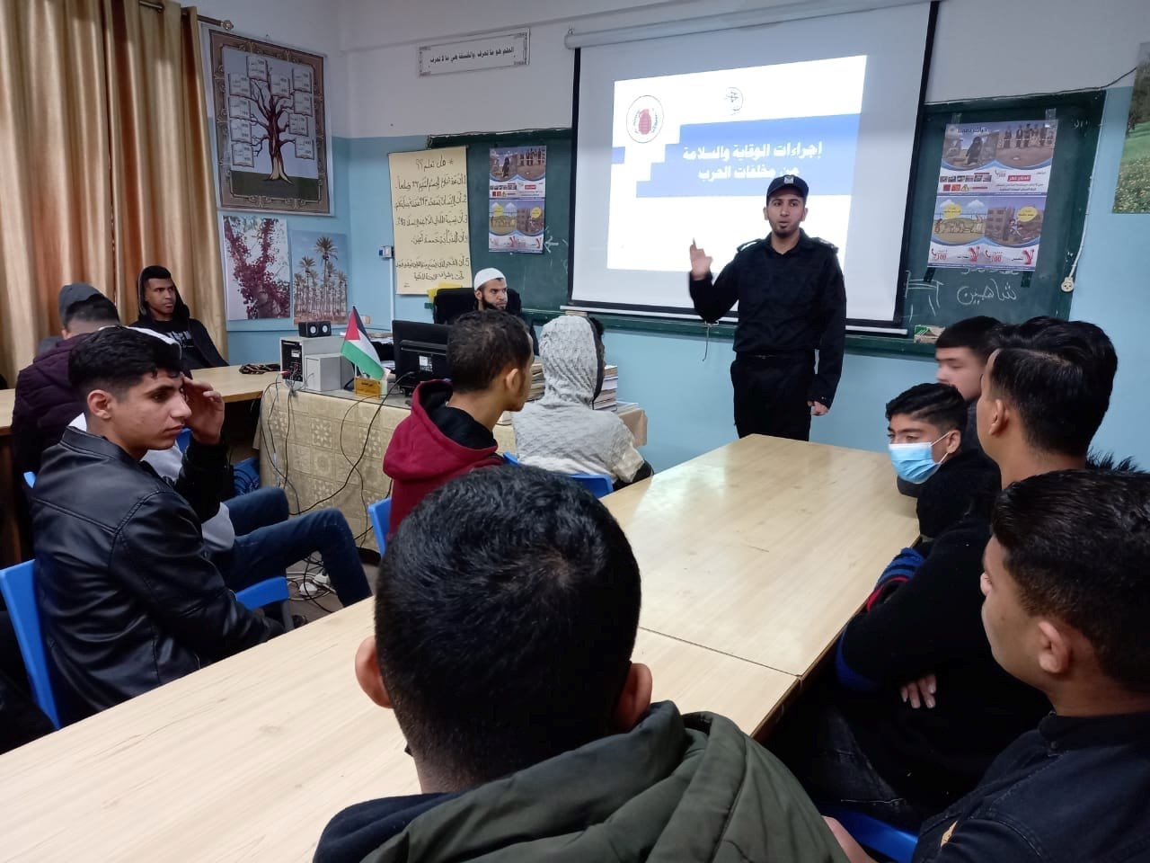 بدوره، استعرض الرائد عامر أبو خليل رئيس قسم هندسة المتفجرات بالمحافظة الوسطى أبرز المعلومات والتفاصيل المتعلقة بالأجسام الحربية ومخلفاتها، وطرق الوقاية والحماية من أي خطر قد ينجم عن العبث بها.