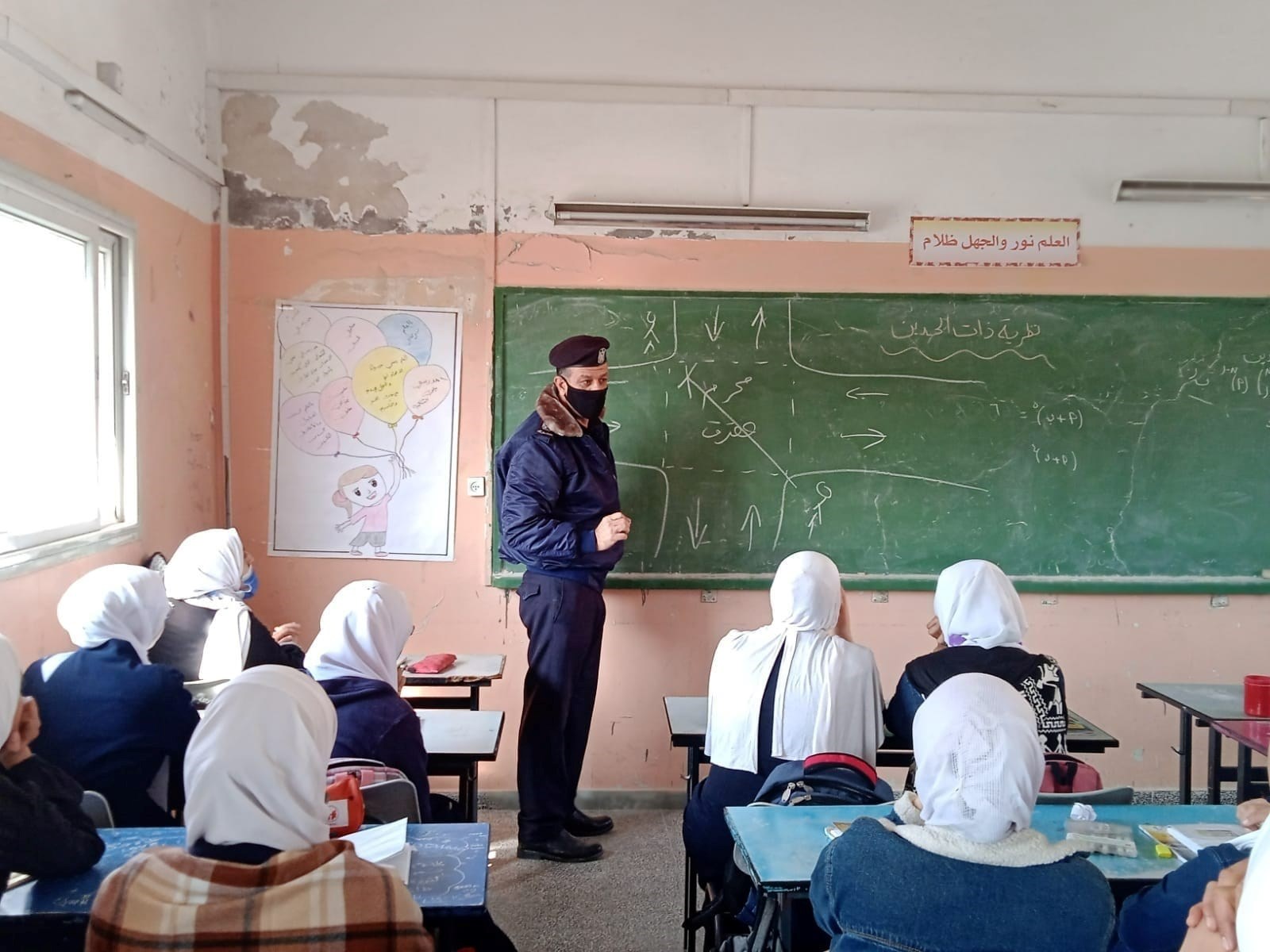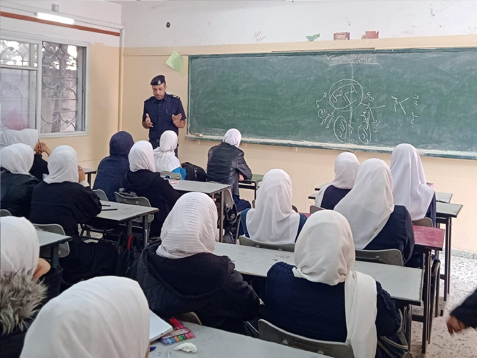 عقد معهد الإرشاد المروري في شرطة المرور والنجدة بمحافظة شمال غزة سلسلة محاضرات توعوية لطالبات مدرسة الفالوجا الثانوية تركزت حول الإستعمال الصحيح والآمن للطريق، ومُسببات حوادث السير والوقاية منها.