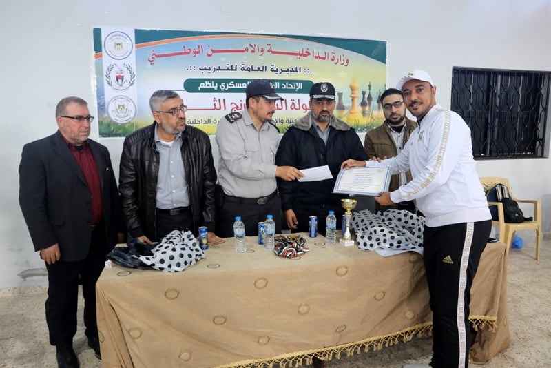 اختتم الاتحاد الرياضي العسكري التابع للمديرية العامة للتدريب صباح الخميس الماضي، بطولة الشطرنج الثانية بنادي الألعاب الرياضية بمقر التدريب المركزي بأنصـار بحضور مدير عام مديرية التدريب عميد محمد خلف وعضو الاتحاد الفلسطيني للشطرنج كابتن وليد أبو الحسن.