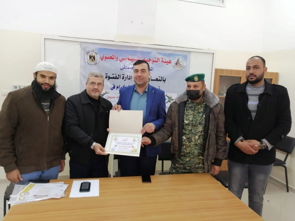 اختتمت هيئة التوجيه السياسي والمعنوي بمحافظة الوسطى دورة" التوعية الأمنية" بواقع 16 ساعة تدريبية لضباط الفتوة في قوات الأمن الوطني بالمحافظة الوسطى بحضور المقدم محمد جبر مدير مكتب توجيه الوسطى والمقدم محمد القصاص مدير إدارة الفتوة بالوسطى والرائد عبد الشافي أبو غرقود رئيس قسم التدريب.