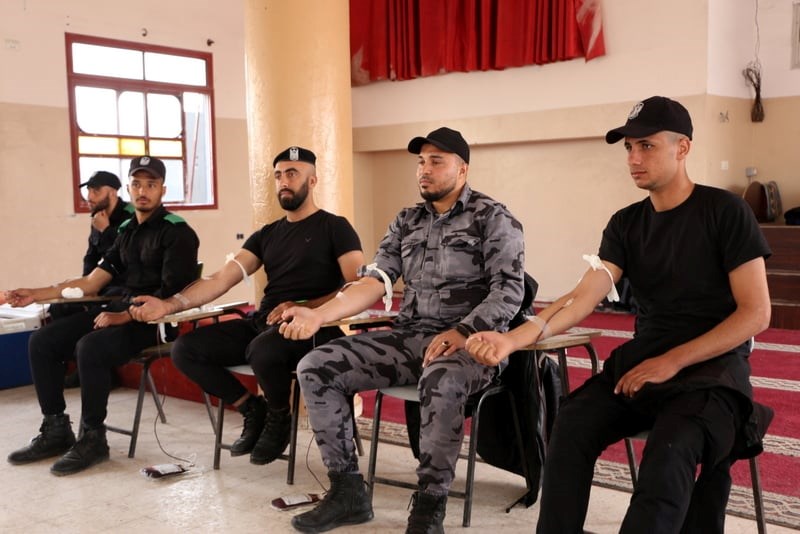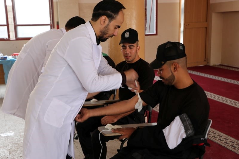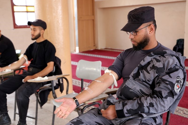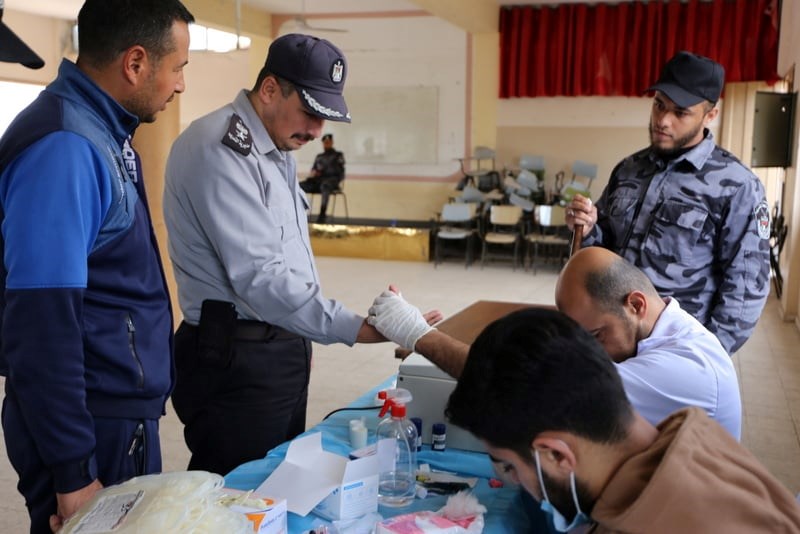 نظمت المديرية العامة للتدريب بوزارة الداخلية بالتعاون مع بنك الدم بمستشفى الشفاء، صباح الخميس ، حملة تبرع بالدم بمشاركة طاقم المديرية وطلاب الدورة التأسيسية 37 وذلك بمقرها بأنصار غرب غزة.