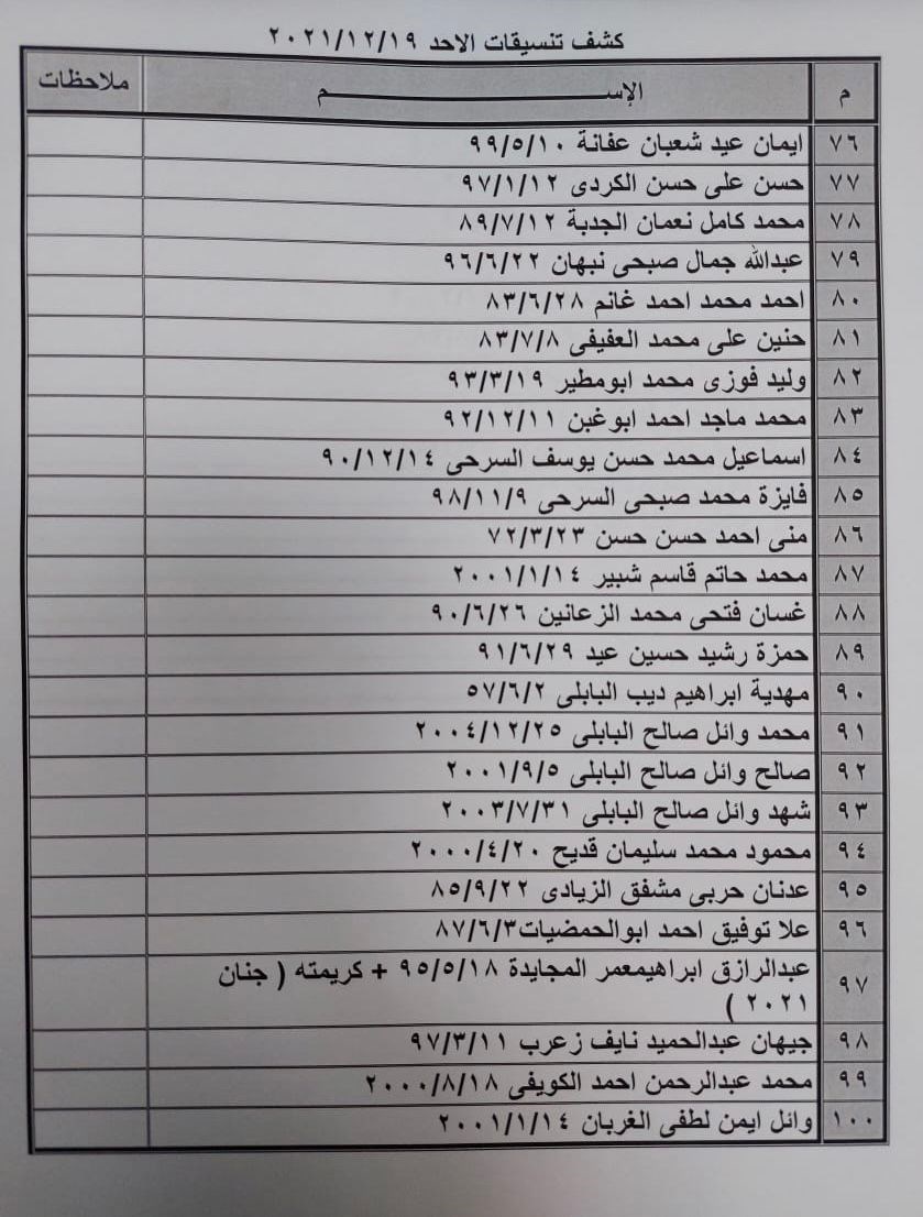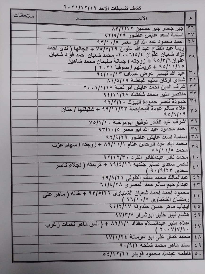 تعلن الهيئة العامة للمعابر والحدود بوزارة الداخلية والأمن الوطني عن وصول كشف "تنسيقات مصرية" للسفر عبر معبر رفح البري يوم الأحد (19 ديسمبر)، والذين عليهم التوجه لإجراء فحص كورونا الساعة 7 صباح الأحد بمركز شـ.ـهداء رفح الصحي ثم التوجه للصالة الخارجية للمعبر لتسهيل سفرهم.