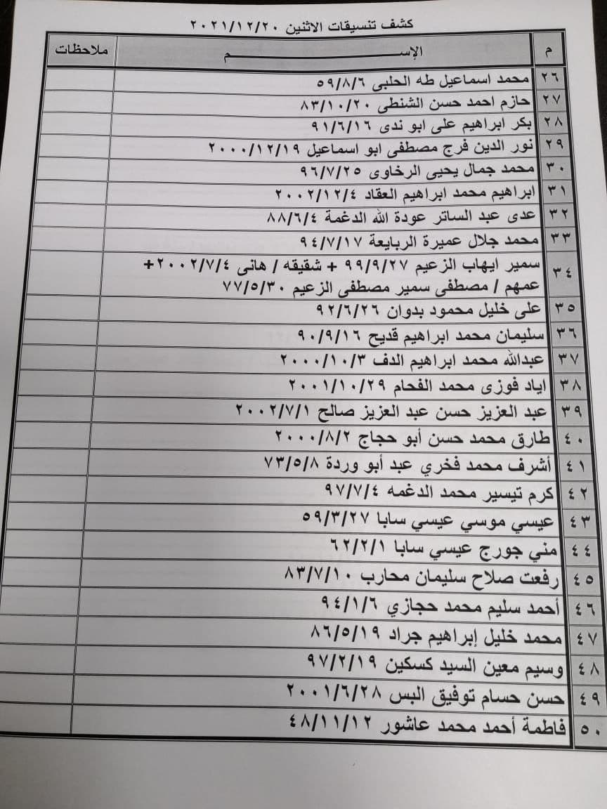 تعلن الهيئة العامة للمعابر والحدود بوزارة الداخلية والأمن الوطني عن وصول كشف "تنسيقات مصرية" للسفر عبر معبر رفح البري يوم الإثنين (20 ديسمبر)، والذين عليهم التوجه لإجراء فحص كورونا بدءاً من الساعة 9 صباح الأحد في المراكز الصحية المعلن عنها مسبقاً بجميع المحافظات.