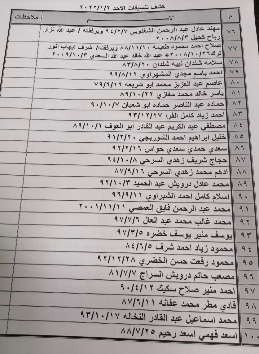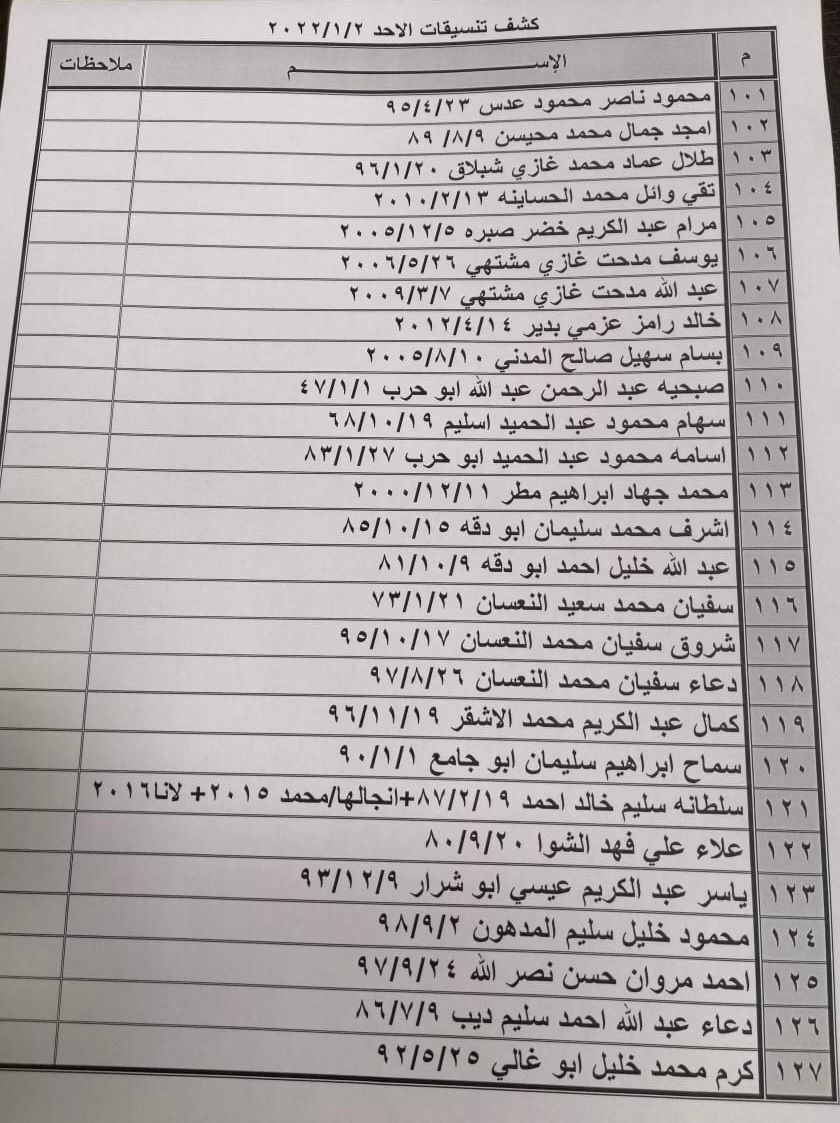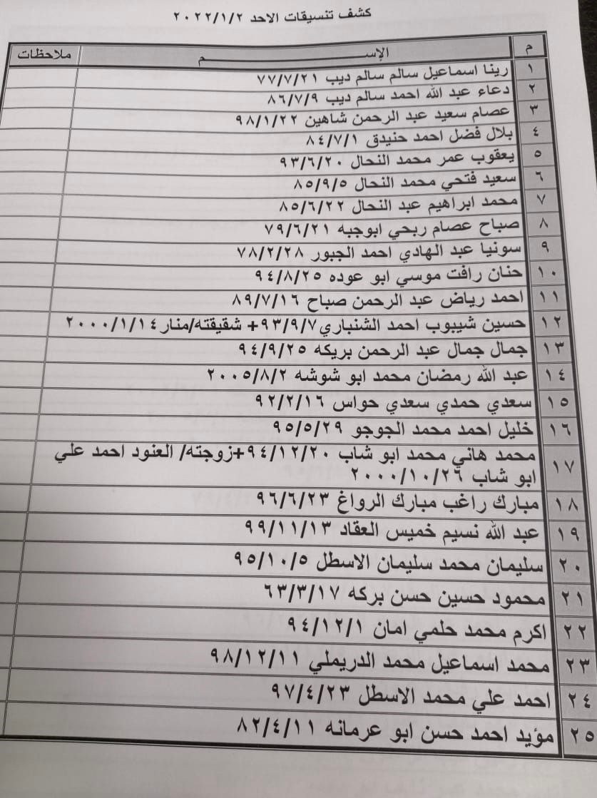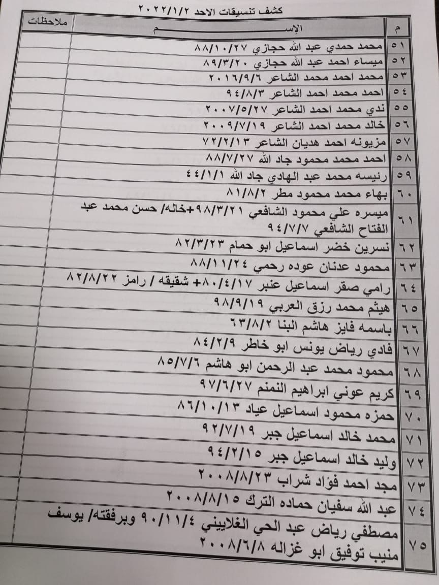 تعلن الهيئة العامة للمعابر والحدود بوزارة الداخلية والأمن الوطني عن وصول كشف "تنسيقات مصرية" للسفر عبر معبر رفح البري يوم الأحد (2 يناير 2022)، والذين عليهم التوجه لإجراء فحص كورونا الساعة 7 صباح الأحد بمركز شـ.ـهداء رفح الصحي ثم التوجه للصالة الخارجية للمعبر لتسهيل سفرهم.