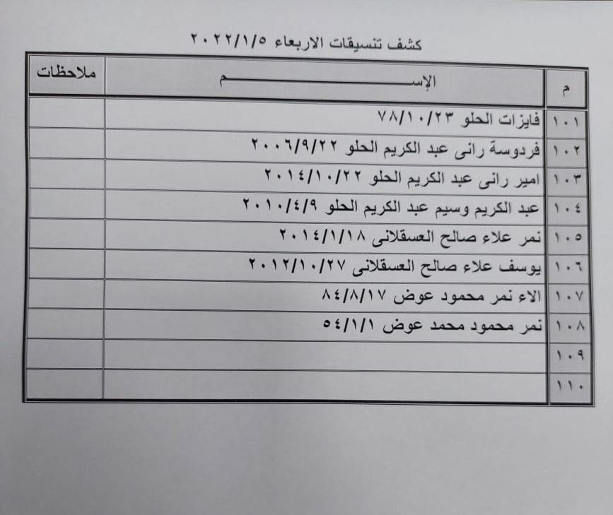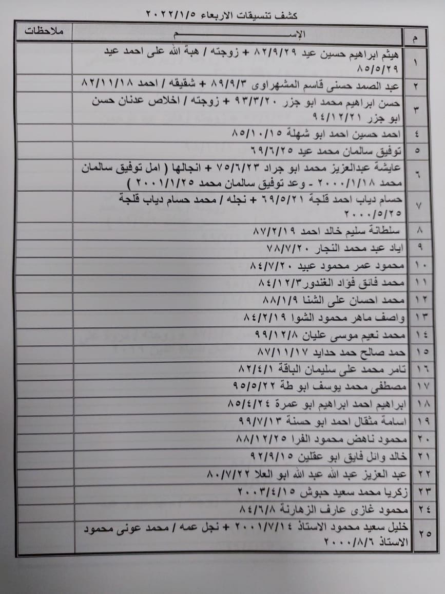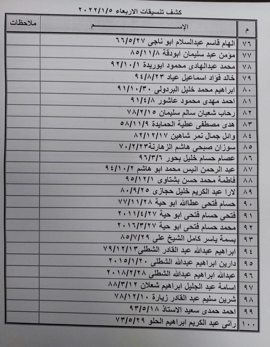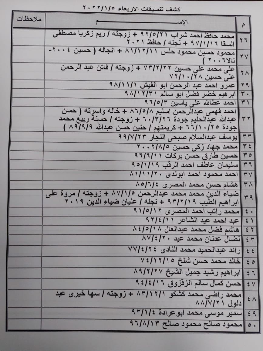 تعلن الهيئة العامة للمعابر والحدود بوزارة الداخلية والأمن الوطني عن وصول كشف "تنسيقات مصرية" للسفر عبر معبر رفح البري يوم الأربعاء (5 يناير)، والذين عليهم التوجه لإجراء فحص كورونا بدءاً من الساعة 9 صباح الثلاثاء في المراكز الصحية المعلن عنها مسبقاً بجميع المحافظات.