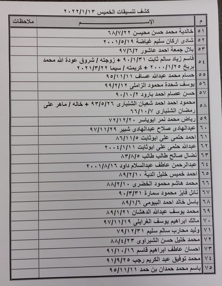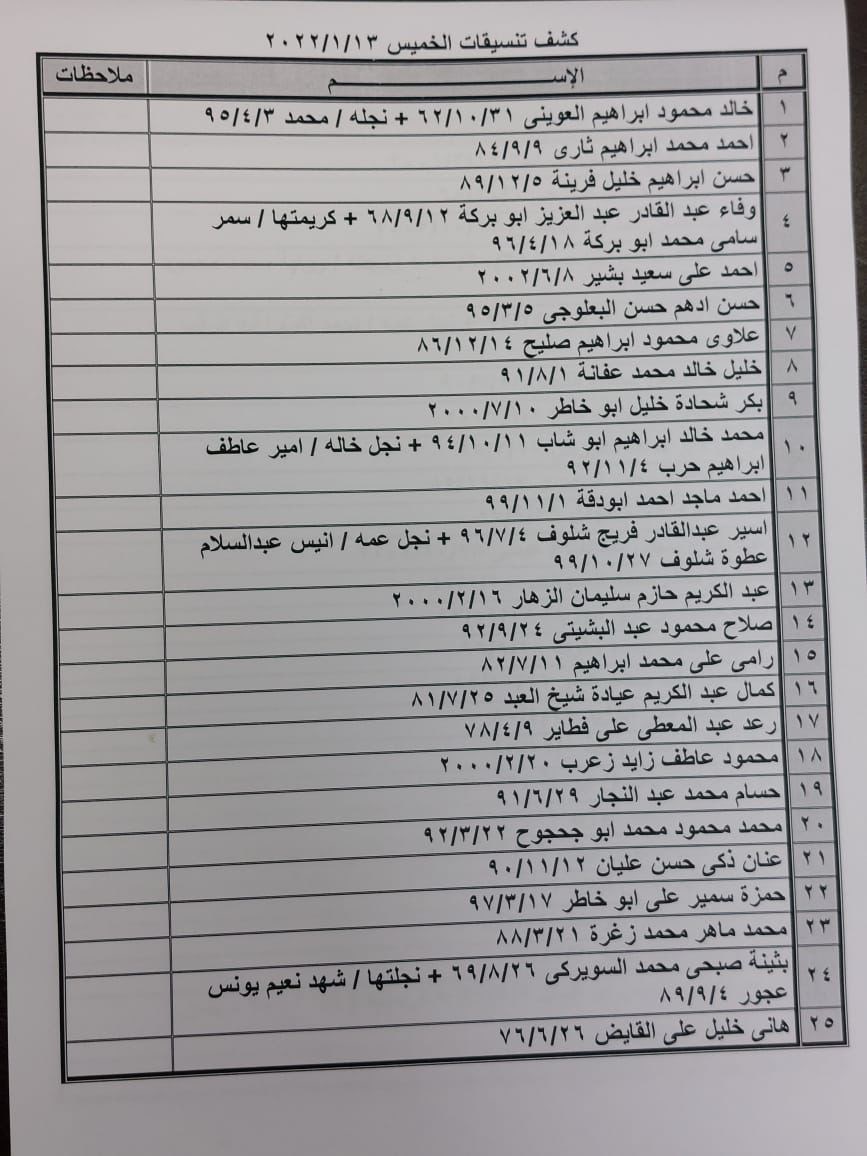 تعلن الهيئة العامة للمعابر والحدود بوزارة الداخلية والأمن الوطني عن وصول كشف "تنسيقات مصرية" للسفر عبر معبر رفح البري يوم الخميس (13 يناير)، والذين عليهم التوجه لإجراء فحص كورونا بدءاً من الساعة 9 صباح الأربعاء في المراكز الصحية المعلن عنها مسبقاً بجميع المحافظات.
