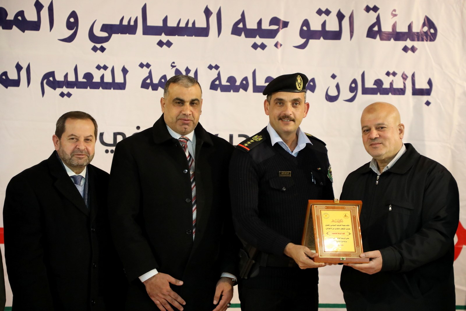 اختتمت هيئة التوجيه السياسي والمعنوي، ظهر الخميس، وبالتعاون مع جامعة الأمة، برنامج النخبة الثامن لـ 140 ضابطاً من حملة الرتب السامية في وزارة الداخلية والأمن الوطني.