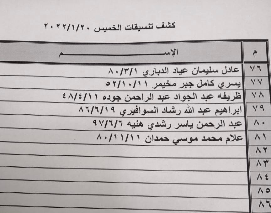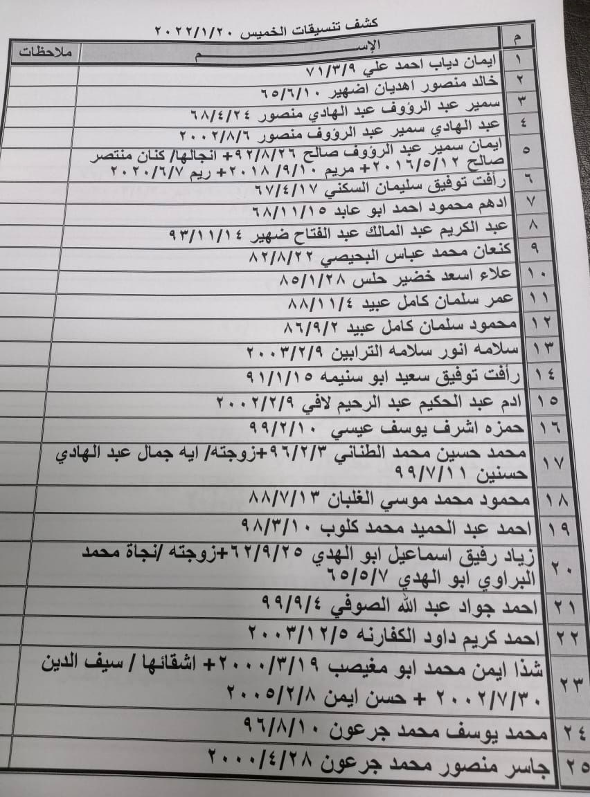 تعلن الهيئة العامة للمعابر والحدود بوزارة الداخلية والأمن الوطني عن وصول كشف "تنسيقات مصرية" للسفر عبر معبر رفح البري يوم الخميس (20 يناير)، والذين عليهم التوجه لإجراء فحص كورونا بدءاً من الساعة 9 صباح الأربعاء في المراكز الصحية المعلن عنها مسبقاً بجميع المحافظات.