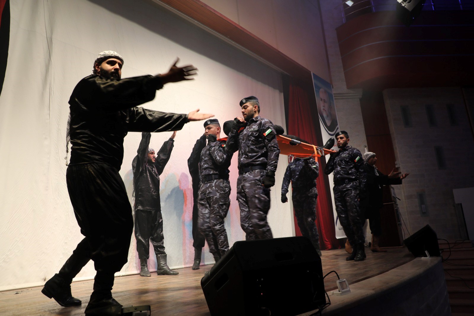 وتضمن الحفل عرضاً مرئياً وأوبريتاً فنياً من إنتاج المكتب الإعلامي للشرطة يُحاكي استهداف الاحتلال لمقرات الشرطة خلال العدوان على غزة عام 2008-2009، وارتقاء مئات الشهداء والجرحى من منتسبي الشرطة.