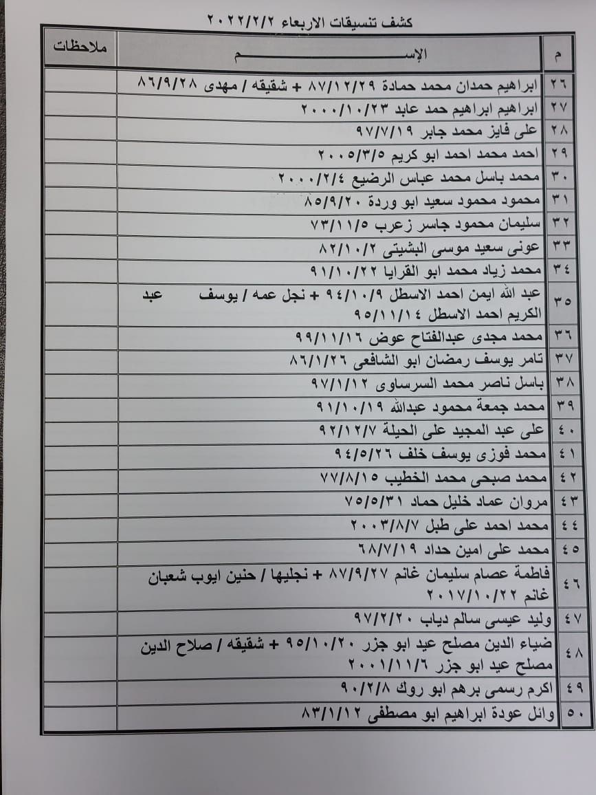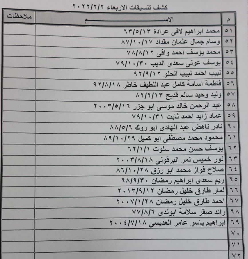 تعلن الهيئة العامة للمعابر والحدود بوزارة الداخلية والأمن الوطني عن وصول كشف "تنسيقات مصرية" للسفر عبر معبر رفح البري يوم الأربعاء (2 فبراير)، والذين عليهم التوجه لإجراء فحص كورونا بدءاً من الساعة 9 صباح الثلاثاء في المراكز الصحية المعلن عنها مسبقاً بجميع المحافظات.