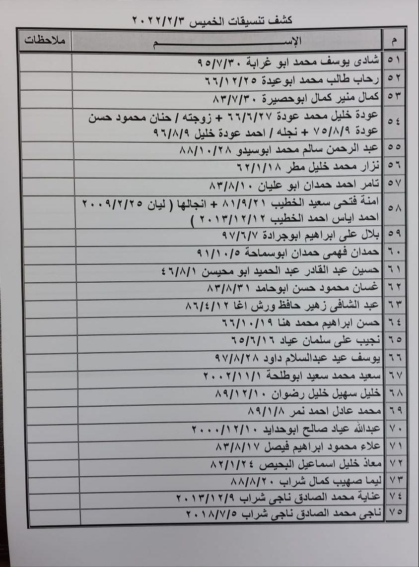 تعلن الهيئة العامة للمعابر والحدود بوزارة الداخلية والأمن الوطني عن وصول كشف "تنسيقات مصرية" للسفر عبر معبر رفح البري يوم الخميس (3 فبراير)، والذين عليهم التوجه لإجراء فحص كورونا بدءاً من الساعة 9 صباح الأربعاء في المراكز الصحية المعلن عنها مسبقاً بجميع المحافظات.