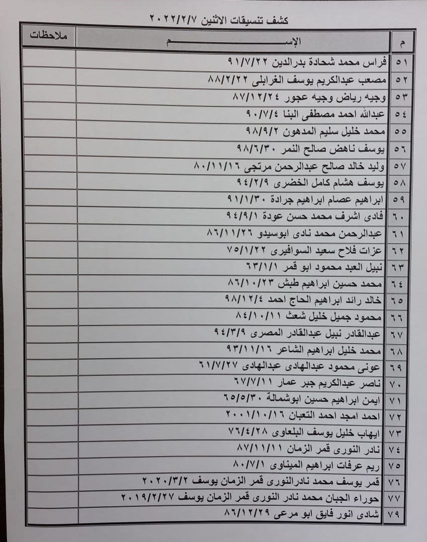 تعلن الهيئة العامة للمعابر والحدود بوزارة الداخلية والأمن الوطني عن وصول كشف "تنسيقات مصرية" للسفر عبر معبر رفح البري يوم الإثنين (7 فبراير)، والذين عليهم التوجه لإجراء فحص كورونا بدءاً من الساعة 9 صباح الأحد في المراكز الصحية المعلن عنها مسبقاً بجميع المحافظات.