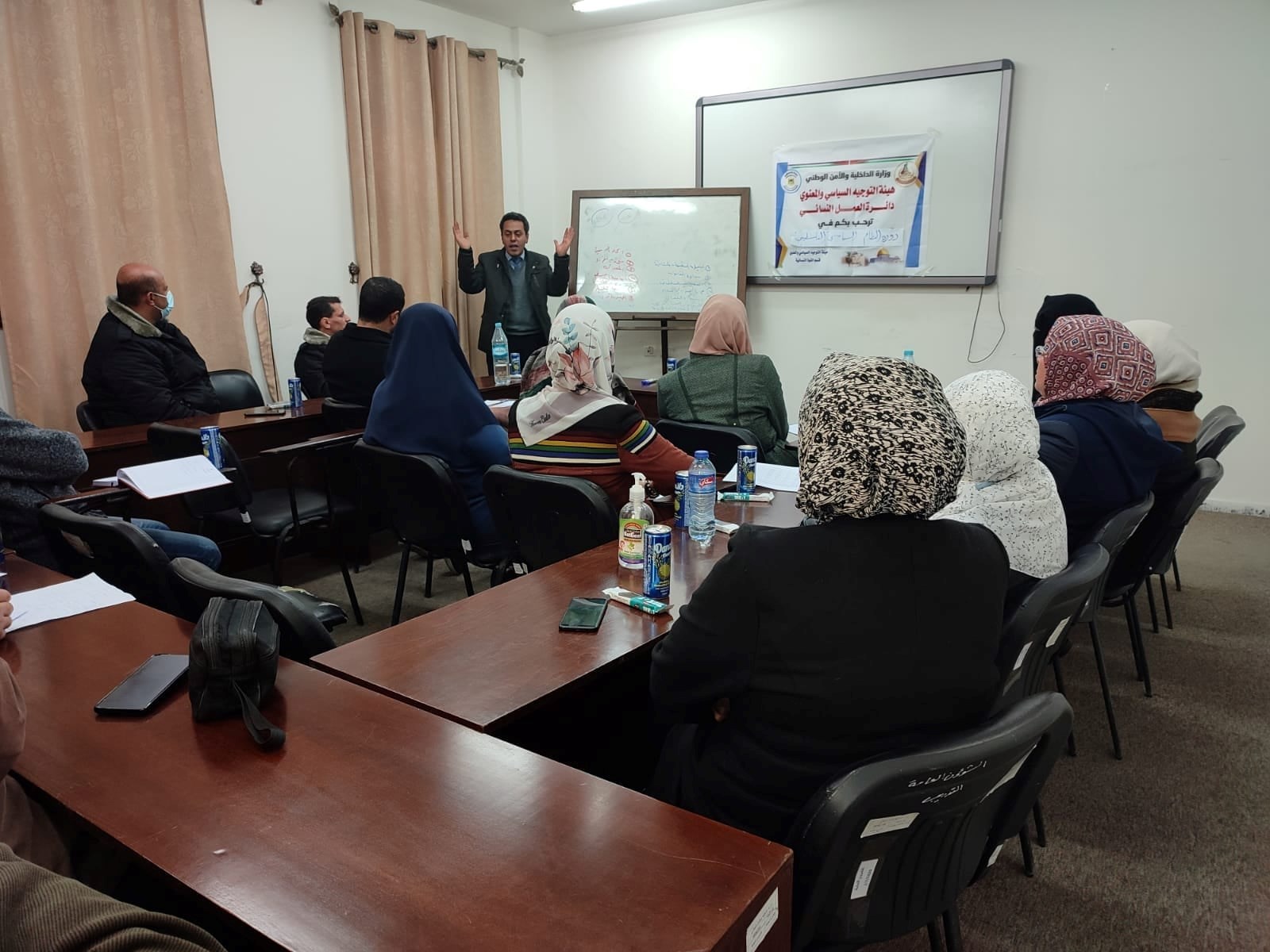افتتحت دائرة العمل النسائي بهيئة التوجيه السياسي والمعنوي دورة بعنوان "النظام السياسي الفلسطيني" بالتعاون مع دائرة التدريب بوزارة الداخلية بمشاركة 18 موظفًا من الشق المدني بالوزارة.