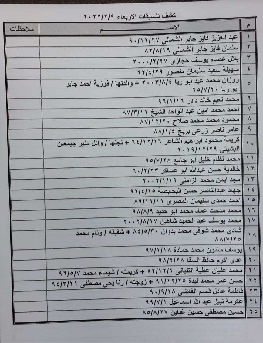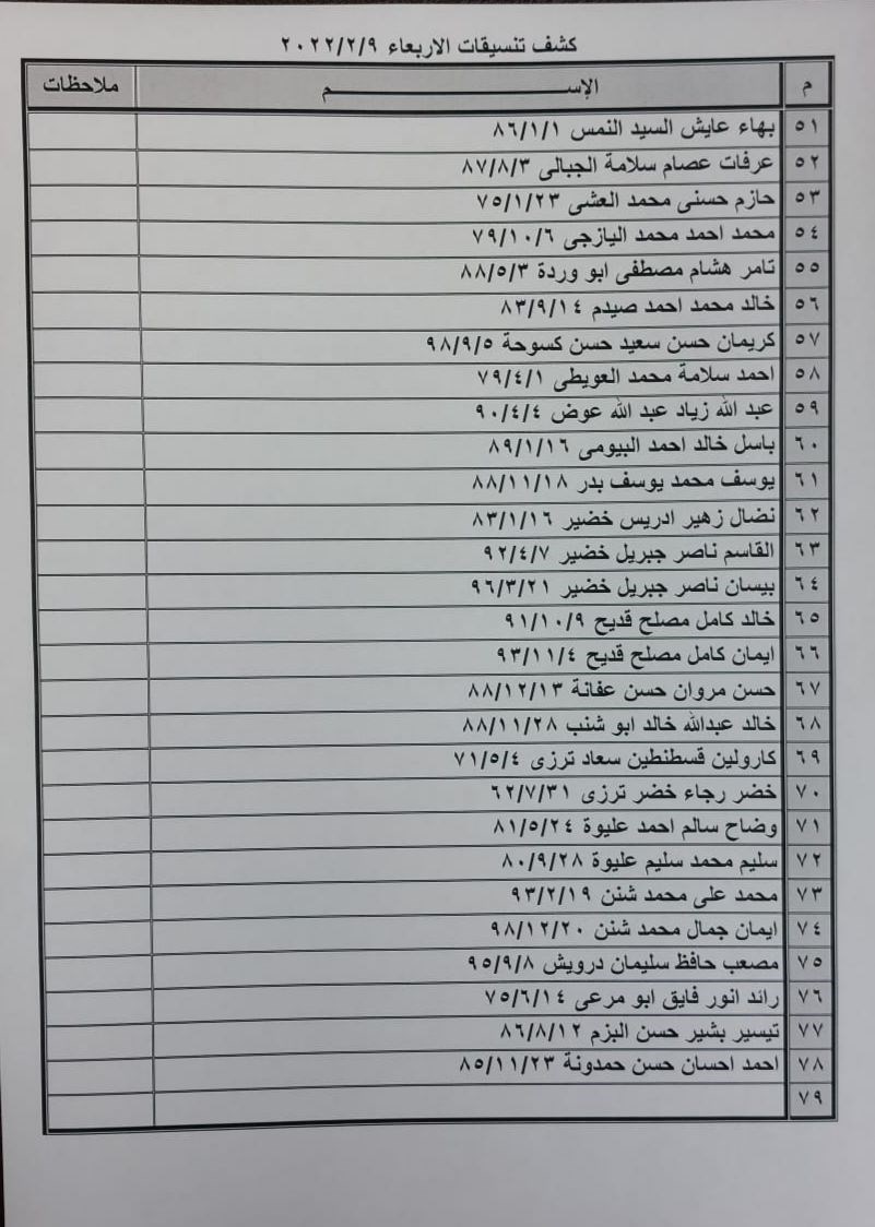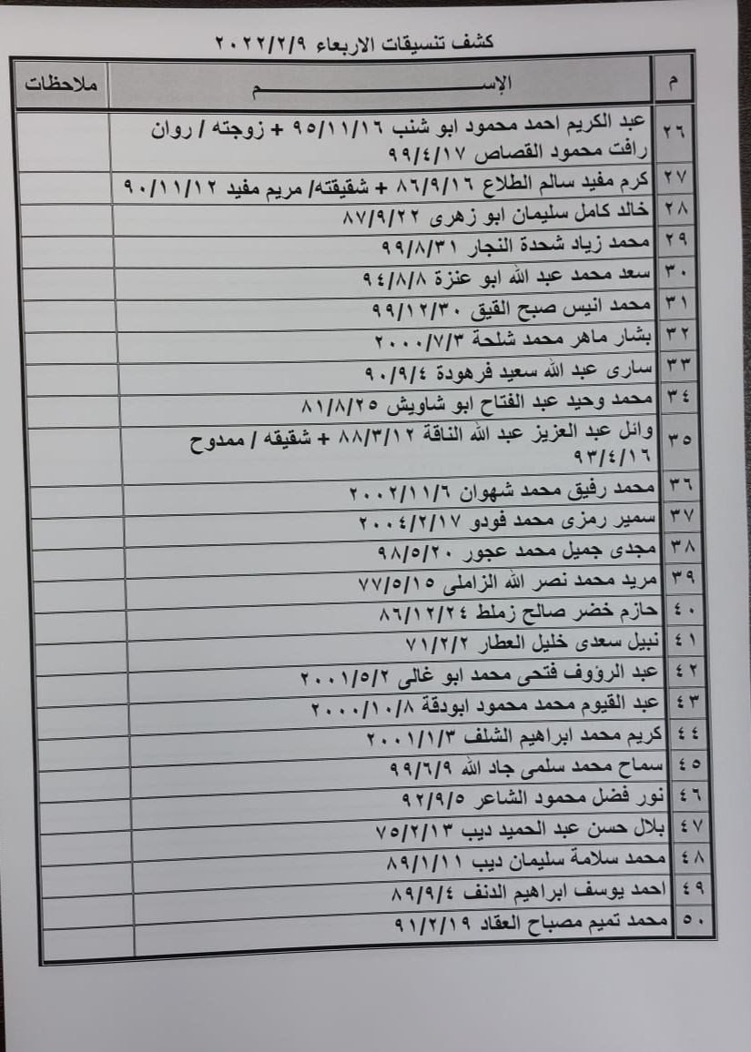 تعلن الهيئة العامة للمعابر والحدود بوزارة الداخلية والأمن الوطني عن وصول كشف "تنسيقات مصرية" للسفر عبر معبر رفح البري يوم غد الأربعاء (9 فبراير)، والذين عليهم التوجه لإجراء فحص كورونا بدءاً من الساعة 9 صباح اليوم في المراكز الصحية المعلن عنها مسبقاً بجميع المحافظات.