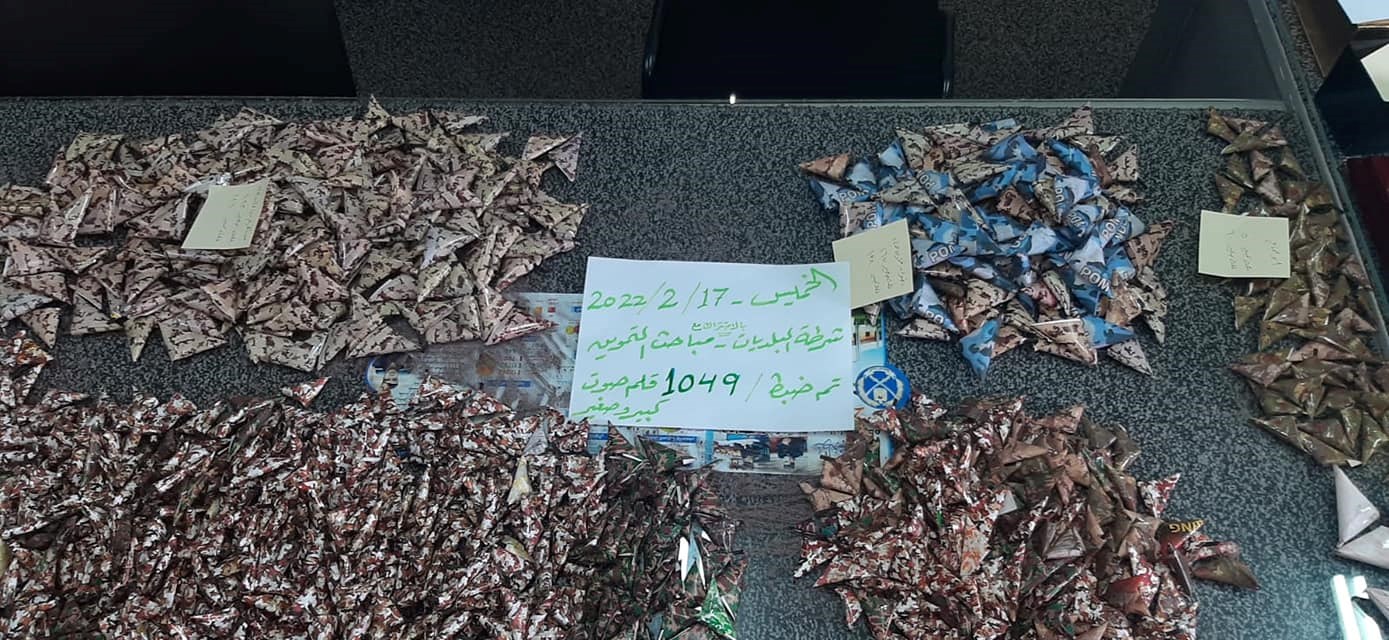 ضبطت مباحث التموين وبمشاركة شرطة البلديات في محافظة رفح، 1049 مثلث مفرقعات في أحد المحلات التجارية في المحافظة.