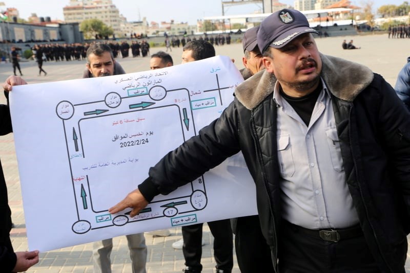 وانطلق المتسابقون في تمام الساعة التاسعة صباحاً من ميدان التدريب المركزي بأنـصار، مروراً بمفترقات وشوارع مدينة غزة الرئيسية، وصولاً لمقر أنصــار للتدريب بمسافة تقدر بـ 6 كم حيث وصــل أوائل المشاركين.