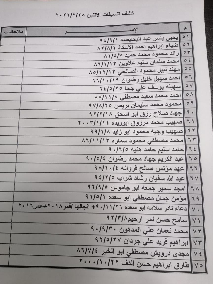 تعلن الهيئة العامة للمعابر والحدود بوزارة الداخلية والأمن الوطني عن وصول كشف "تنسيقات مصرية" للسفر عبر معبر رفح البري يوم الإثنين (28 فبراير)، والذين عليهم التوجه لإجراء فحص كورونا بدءاً من الساعة 9 صباح الأحد في المراكز الصحية المعلن عنها مسبقاً بجميع المحافظات.