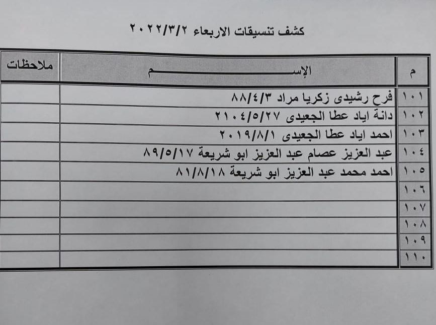 تعلن الهيئة العامة للمعابر والحدود بوزارة الداخلية والأمن الوطني عن وصول كشف "تنسيقات مصرية" للسفر عبر معبر رفح البري يوم الأربعاء (2 مارس)، والذين عليهم التوجه لإجراء فحص كورونا بدءاً من الساعة 9 صباح الثلاثاء في المراكز الصحية المعلن عنها مسبقاً بجميع المحافظات.