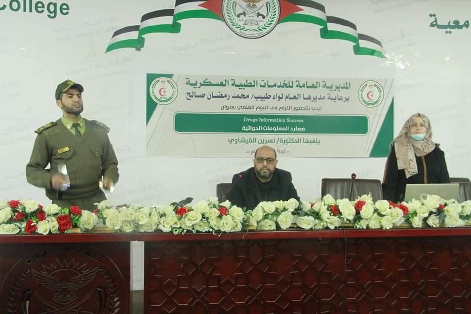 نظم مكتب مساعد المدير العام للشؤون الفنية بالتعاون مع وحدة التنمية البشرية بالمديرية العامة للخدمات الطبية العسكرية التابعة لوزارة الداخلية والأمن الوطني اليوم يومًا علميًا بعنوان " مصادر المعلومات الدوائية "، وذلك بقاعة كلية الرباط الجامعية غرب مدينة غزة.
