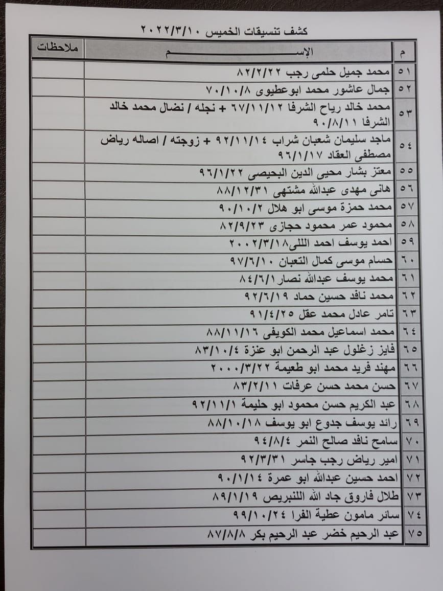 تعلن الهيئة العامة للمعابر والحدود بوزارة الداخلية والأمن الوطني عن وصول كشف "تنسيقات مصرية" للسفر عبر معبر رفح البري يوم الخميس (10 مارس)، والذين عليهم التوجه لإجراء فحص كورونا بدءاً من الساعة 9 صباح الأربعاء في المراكز الصحية المعلن عنها مسبقاً بجميع المحافظات.
