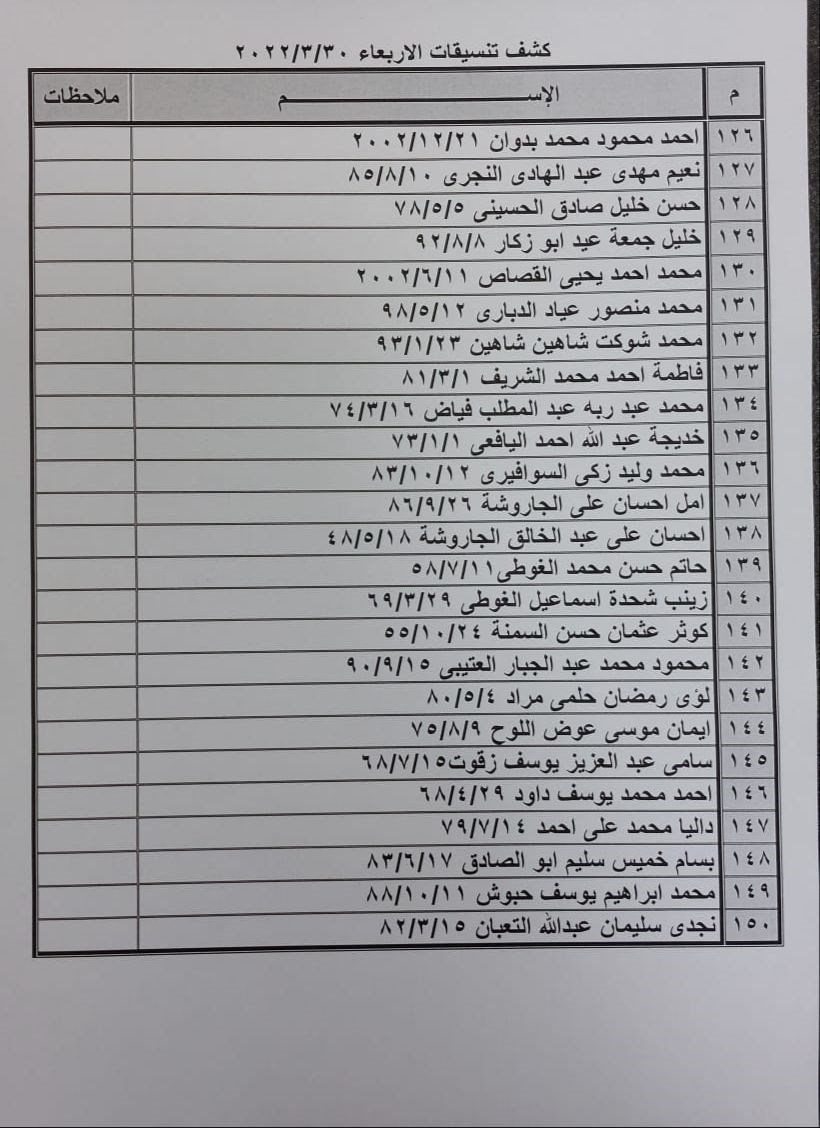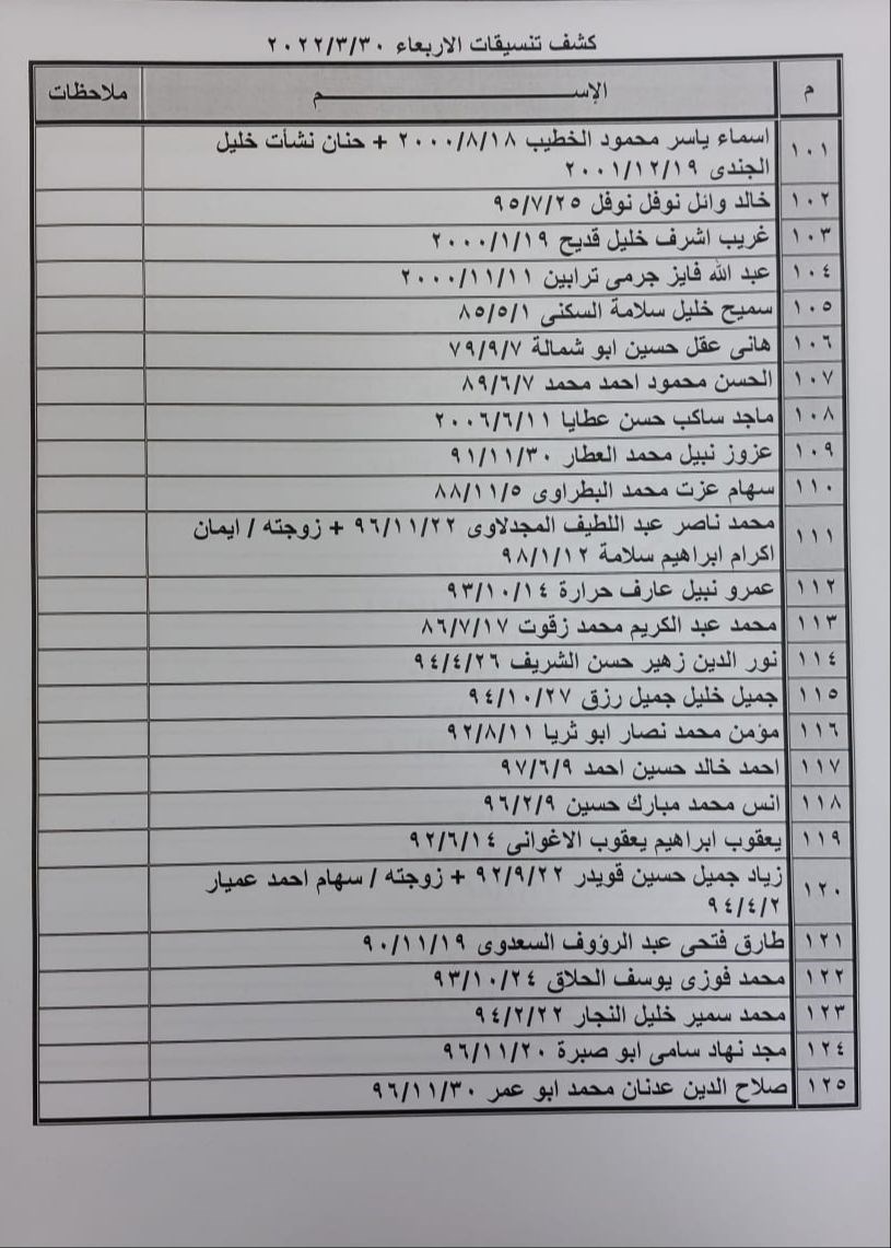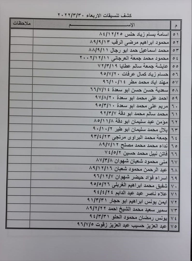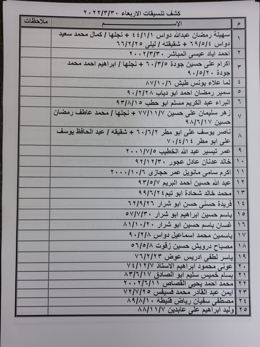 تعلن الهيئة العامة للمعابر والحدود بوزارة الداخلية والأمن الوطني عن وصول كشف "تنسيقات مصرية" للسفر عبر معبر رفح البري يوم غد الأربعاء (30 مارس)، والذين عليهم التوجه لإجراء فحص كورونا بدءاً من الساعة 9 صباح اليوم في المراكز الصحية المعلن عنها مسبقاً بجميع المحافظات.