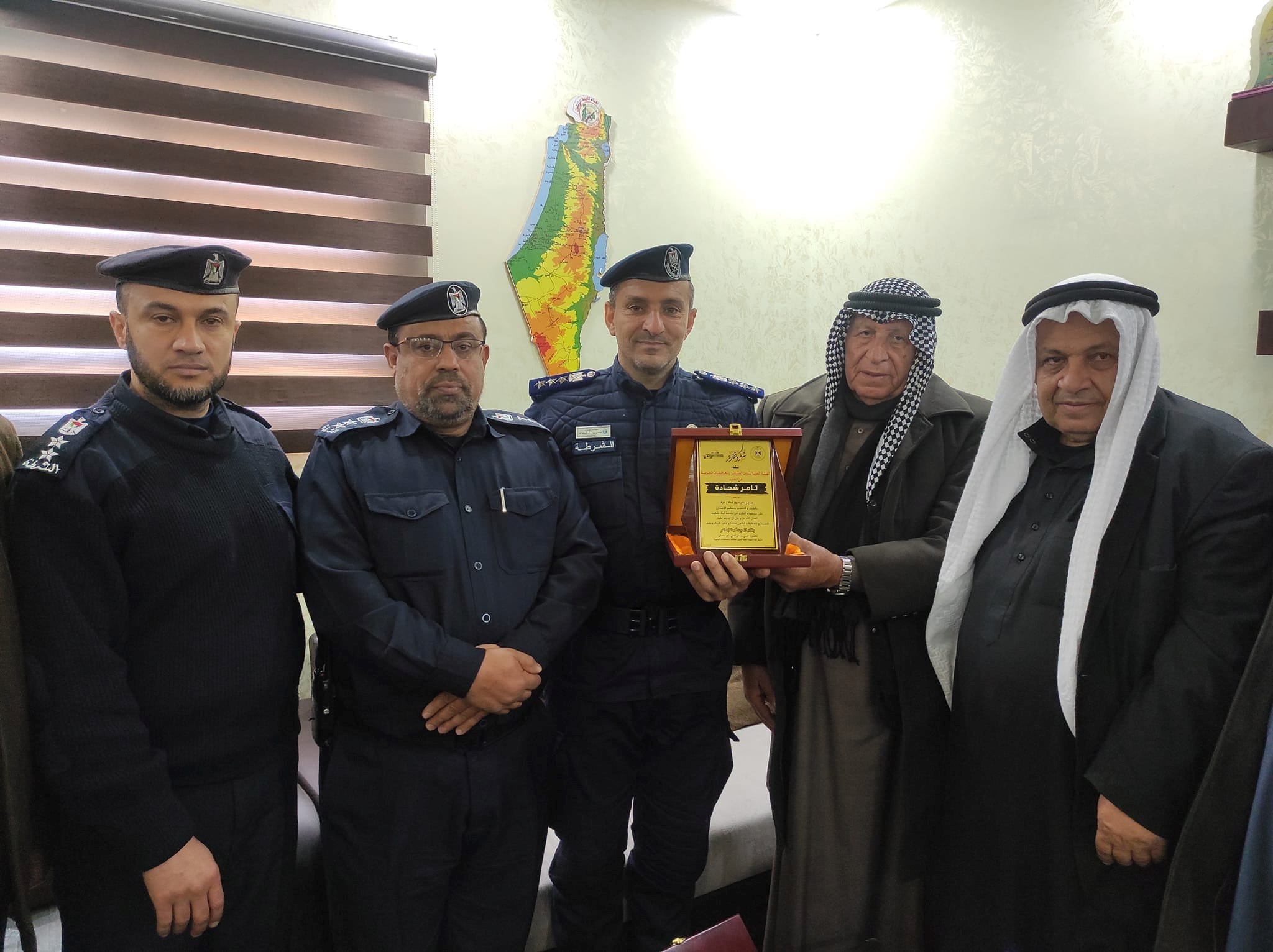 وفي ختام الزيارة كرّم وفد الهيئة قيادة شرطة المرور والنجدة تقديرًا لجهودهم في ضبط الحالة المرورية.