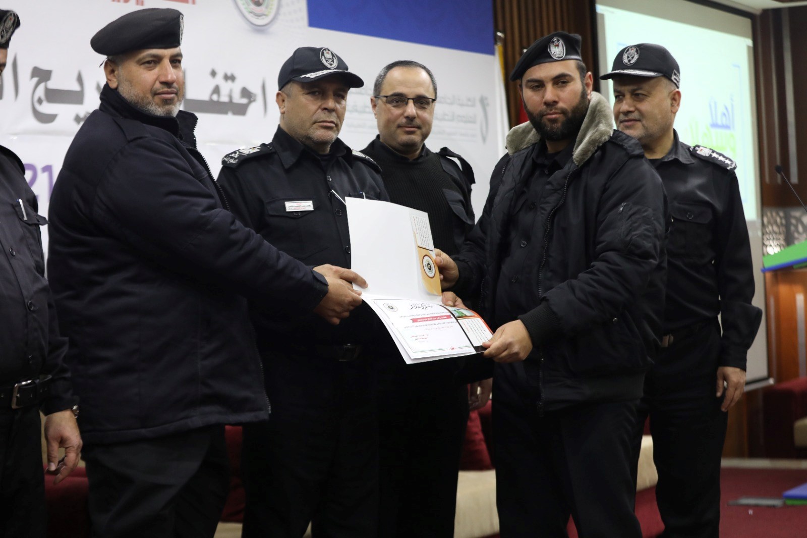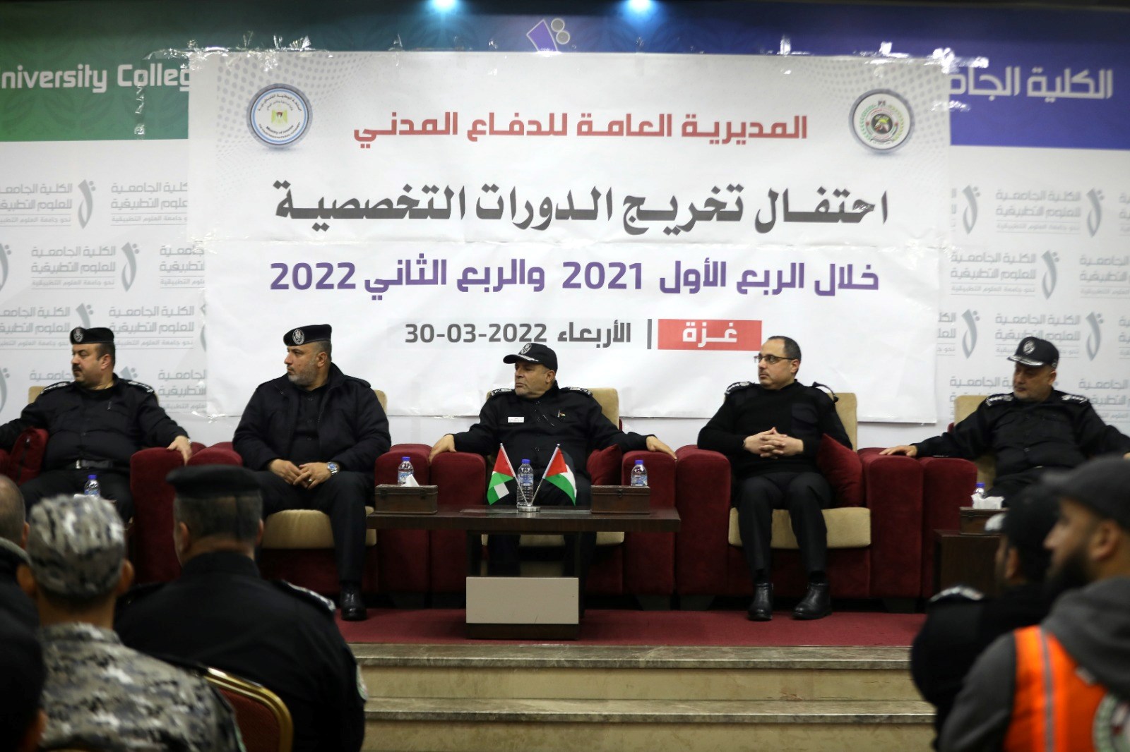 وحضر حفل تخريج الذي عقد في مقر الكلية الجامعية للعلوم التطبيقية جنوب مدينة غزة، اللواء زهير شاهين مدي عام الدفاع المدني، والعميد خليل قزعاط مساعد المدير العام لشؤون المحافظات، والعميد سمير الخطيب مساعد المدير عالم للعمليات والطوارئ، والعميد زهدي الشوبكي مساعد المدير العام لشؤون القوى البشرية، والعميد وائل لولو مدير إدارة التدريب، ومدراء المحافظات والمراكز والإدارات بالجهاز.