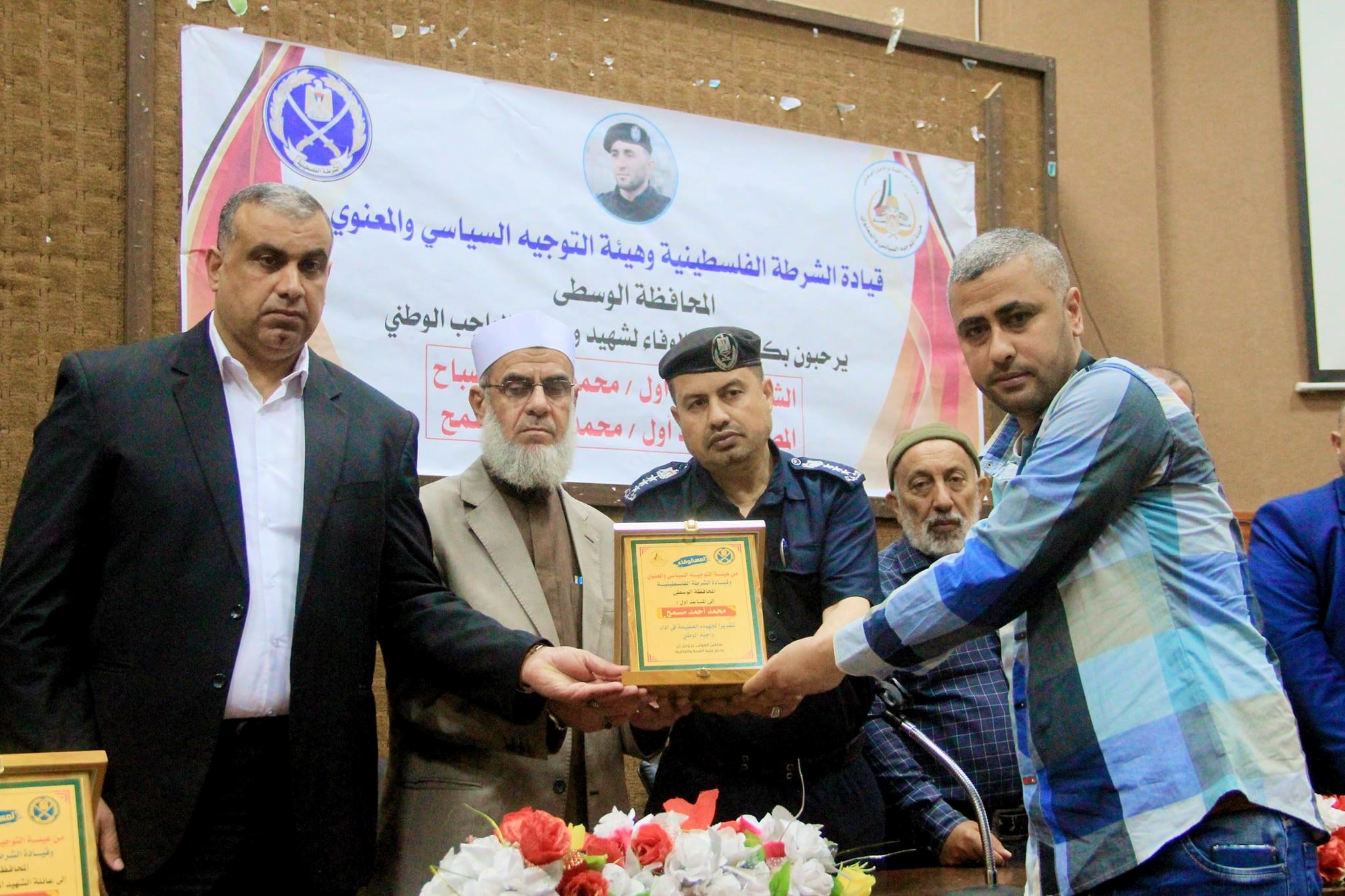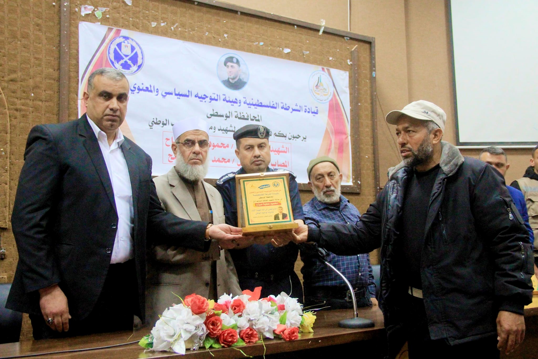 نظمت قيادة الشرطة الفلسطينية وهيئة التوجيه السياسي والمعنوي في المحافظة الوسطى، اليوم الخميس، لقاءً تكريميًا لذوي شهيد الواجب الوطني الشهيد مساعد أول محمود عطية صباح، وزميله المصاب مساعد أول محمد أحمد مسمح.
