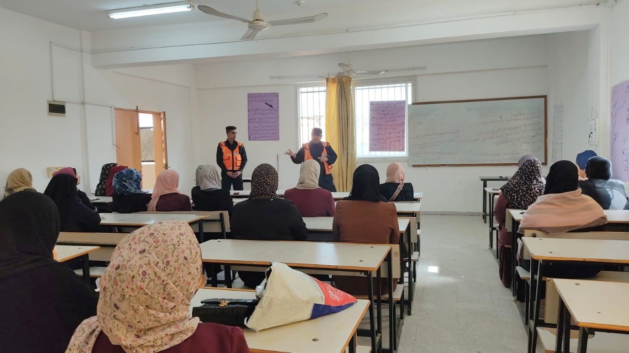 وقال النقيب نور عصفور رئيس قسم التدريب في الدفاع المدني في محافظة خانيونس إن القسم نظم سلسلة محاضرات في كيفية التعامل مع المخاطر وقت الطوارئ لطلاب مركز التدريب المهني بمحافظة خانيونس.