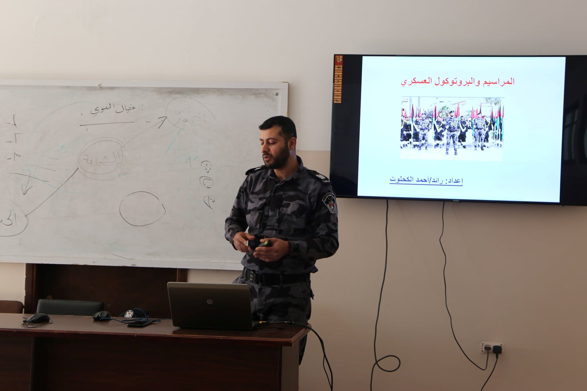 وتهدف دورة البروتوكول العسكري والتي تضم محورين عملي ونظري لشرح مفاهيم متعلقة بأصول المراسيم والبروتوكول ومراسم الزيارات الرسمية والأسبقيات والأقدميـة العسكرية والضيافة والقيافة وتكريم الطواقم وغيرها من المفاهيم ذات العلاقة بإتيكيت العمل لدى المؤسسة العسكريـة.