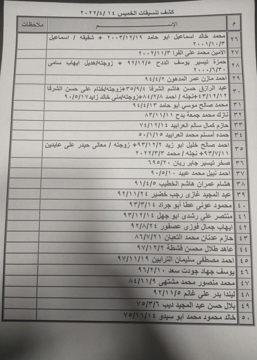 تعلن الهيئة العامة للمعابر والحدود بوزارة الداخلية والأمن الوطني عن وصول كشف "تنسيقات مصرية" للسفر عبر معبر رفح البري يوم الأربعاء (13 أبريل)، والذين عليهم التوجه لإجراء فحص كورونا بدءاً من الساعة 9 صباح الثلاثاء في المراكز الصحية المعلن عنها مسبقاً بجميع المحافظات.