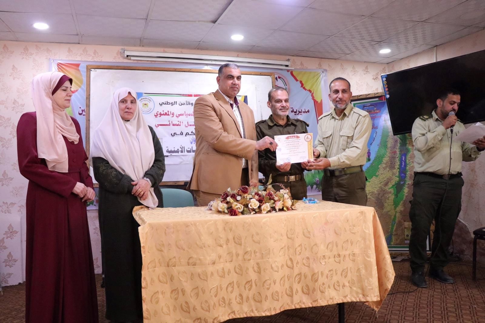 وحضر حفل التخريج اللواء طبيب محمد صالح مدير عام مديرية الخدمات الطبية العسكرية، والعميد د. محمد الجريسي رئيس هيئة التوجيه السياسي، والرائد نجاح البطنيجي مدير وحدة العمل النسائي بالهيئة.