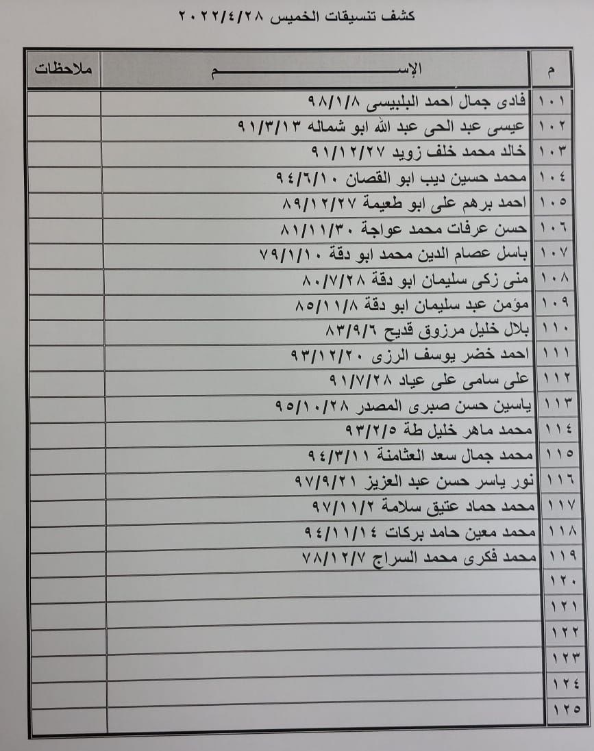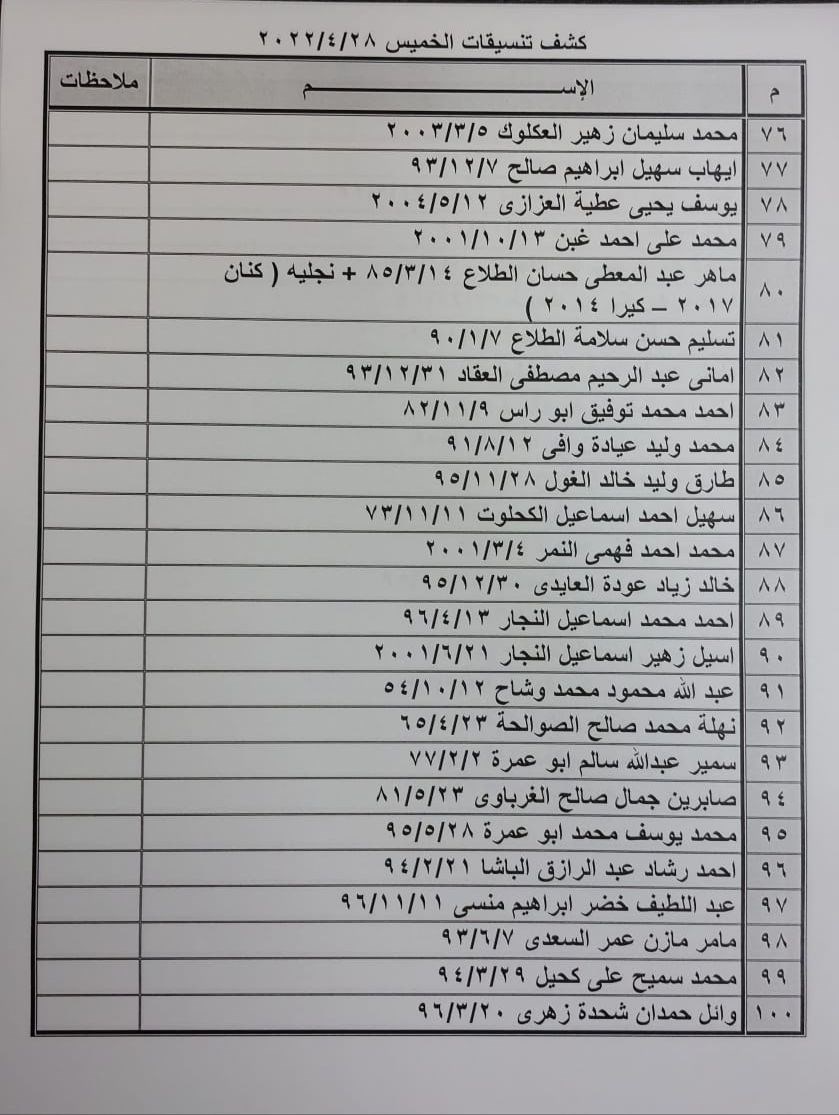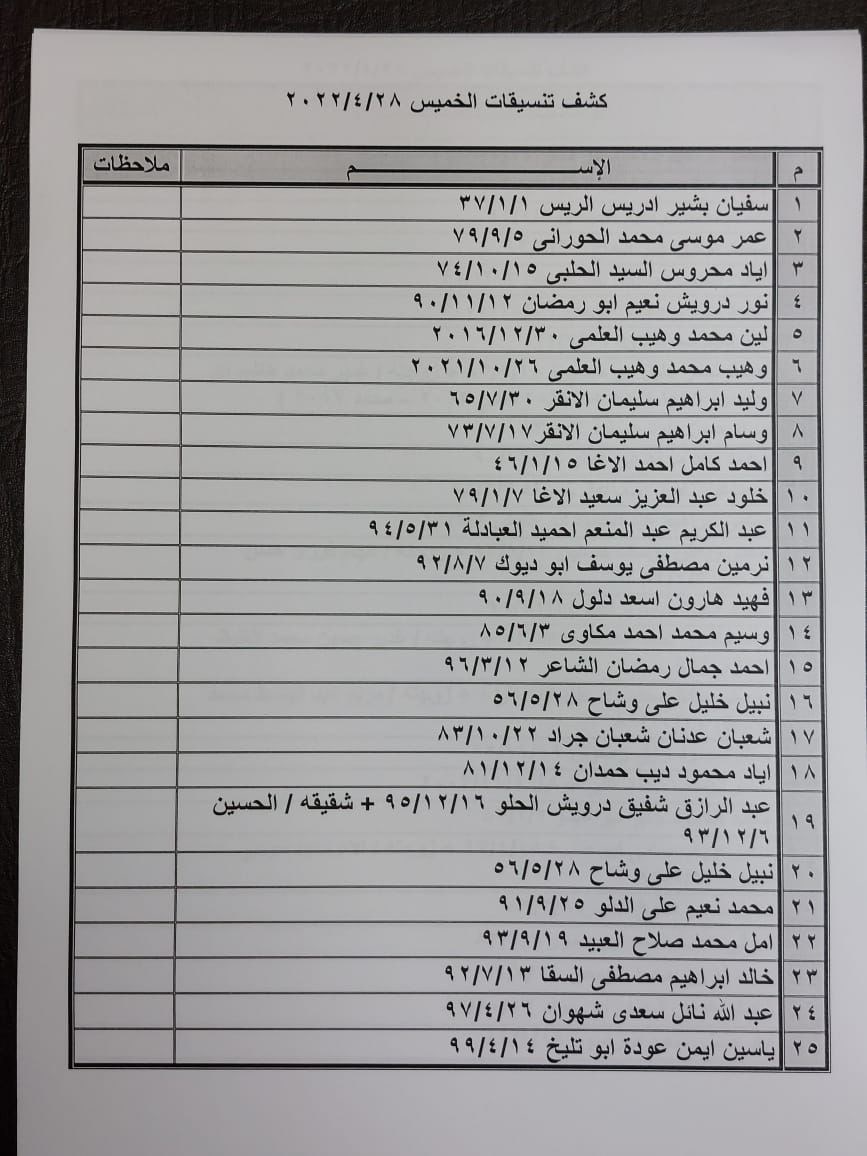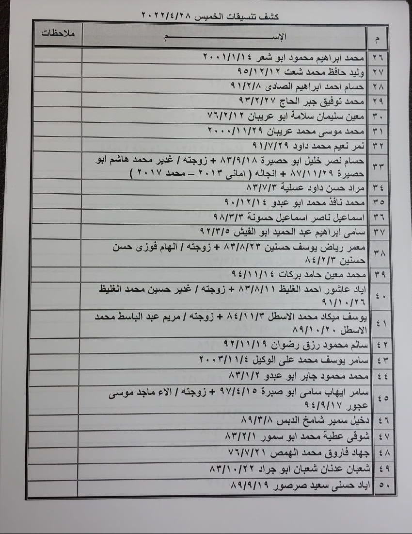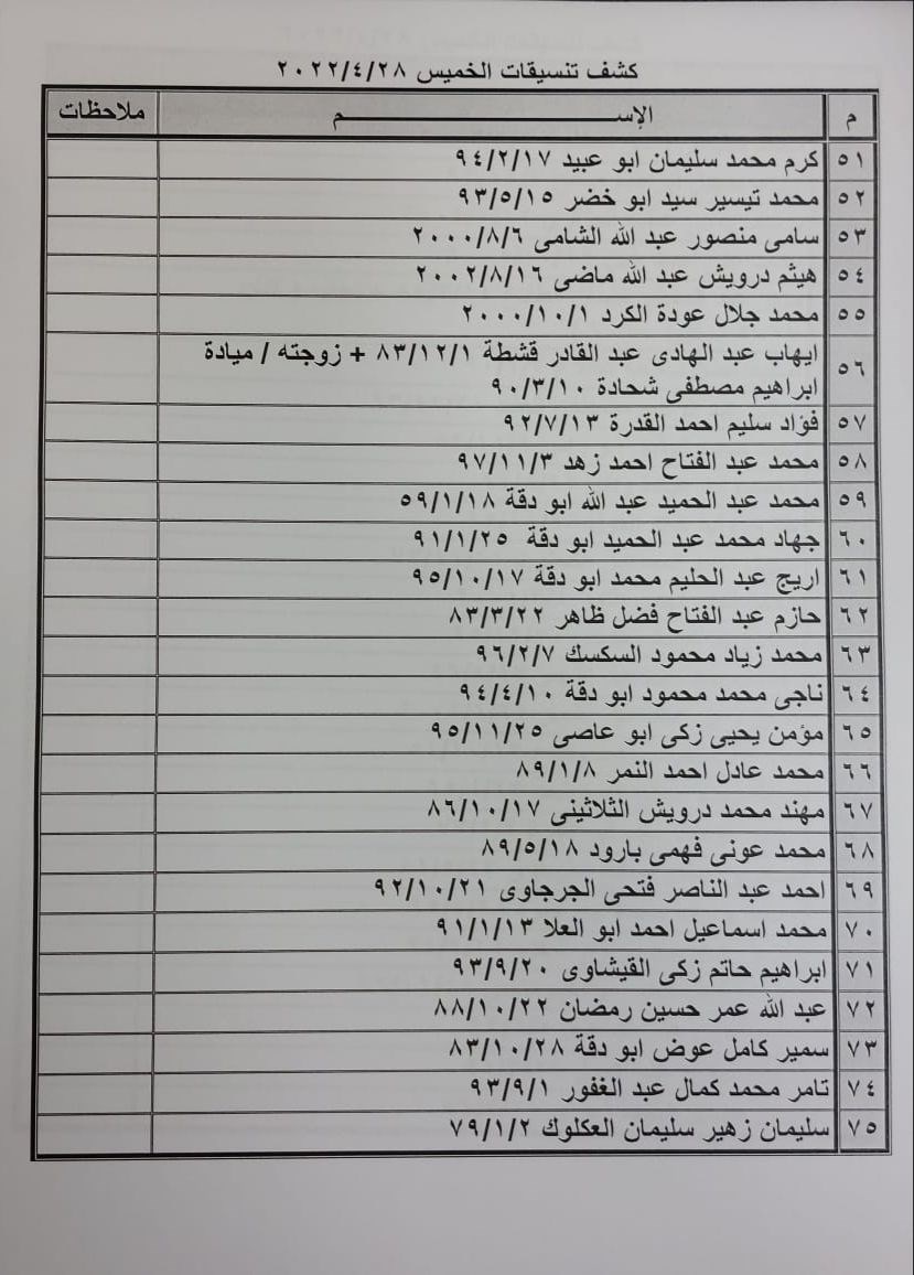 تعلن الهيئة العامة للمعابر والحدود بوزارة الداخلية والأمن الوطني عن وصول كشف "تنسيقات مصرية" للسفر عبر معبر رفح البري يوم الخميس (28 أبريل)، والذين عليهم التوجه لإجراء فحص كورونا بدءاً من الساعة 9 صباح الأربعاء في المراكز الصحية المعلن عنها مسبقاً بجميع المحافظات.