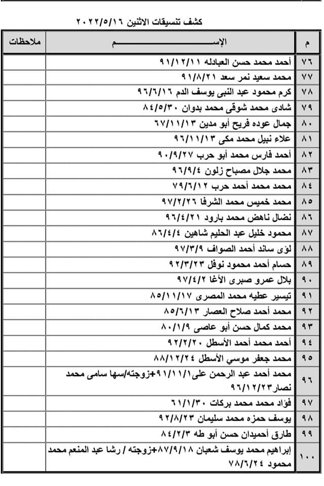 تعلن الهيئة العامة للمعابر والحدود بوزارة الداخلية والأمن الوطني عن وصول كشف "تنسيقات مصرية" للسفر عبر معبر رفح البري يوم الإثنين (16 مايو)، والذين عليهم التوجه لإجراء فحص كورونا بدءاً من الساعة 9 صباح الأحد في المراكز الصحية المعلن عنها مسبقاً بجميع المحافظات.