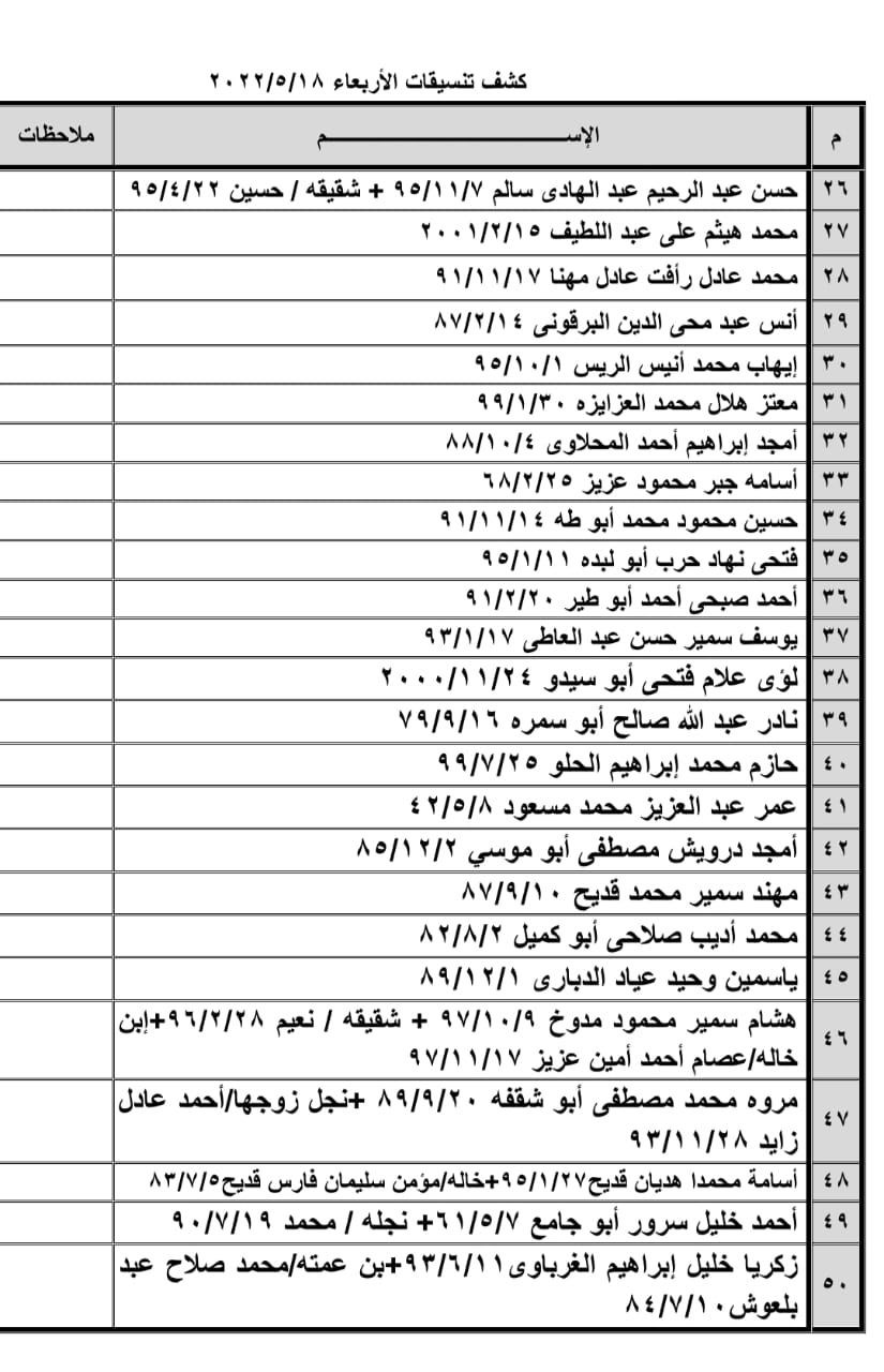 تعلن الهيئة العامة للمعابر والحدود بوزارة الداخلية والأمن الوطني عن وصول كشف "تنسيقات مصرية" للسفر عبر معبر رفح البري يوم غد الأربعاء (18 مايو)، والذين عليهم التوجه لإجراء فحص كورونا بدءاً من الساعة 9 صباح اليوم الثلاثاء في المراكز الصحية المعلن عنها مسبقاً بجميع المحافظات.