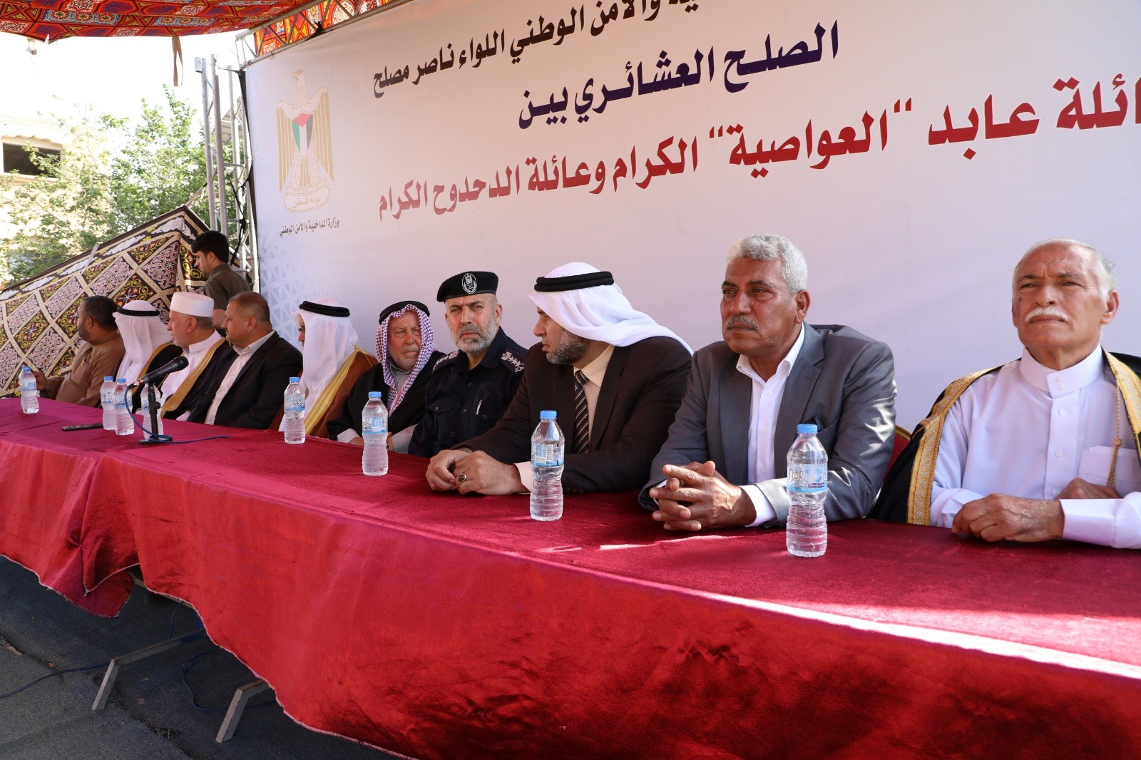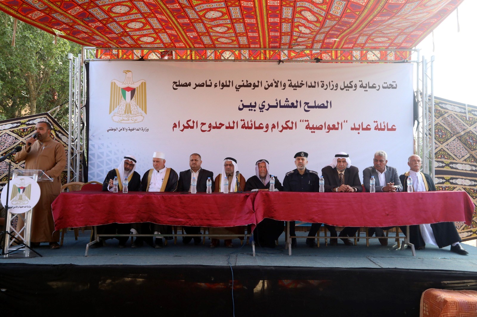 رعت وزارة الداخلية والأمن الوطني صلحًا عشائريًا عصر الجمعة، بين عائلتي عابد "العواصية" والدحدوح على إثر استشهاد المواطن إبراهيم عابد "العواصية" عن طريق الخطأ.