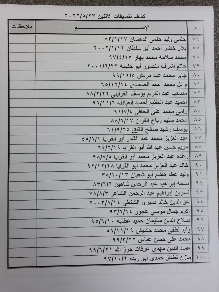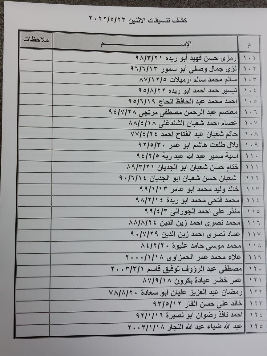 تعلن الهيئة العامة للمعابر والحدود بوزارة الداخلية والأمن الوطني عن وصول كشف "تنسيقات مصرية" للسفر عبر معبر رفح البري يوم غد الإثنين (23 مايو)، والذين عليهم التوجه لإجراء فحص كورونا بدءاً من الساعة 9 صباح اليوم الأحد في المراكز الصحية المعلن عنها مسبقاً بجميع المحافظات.