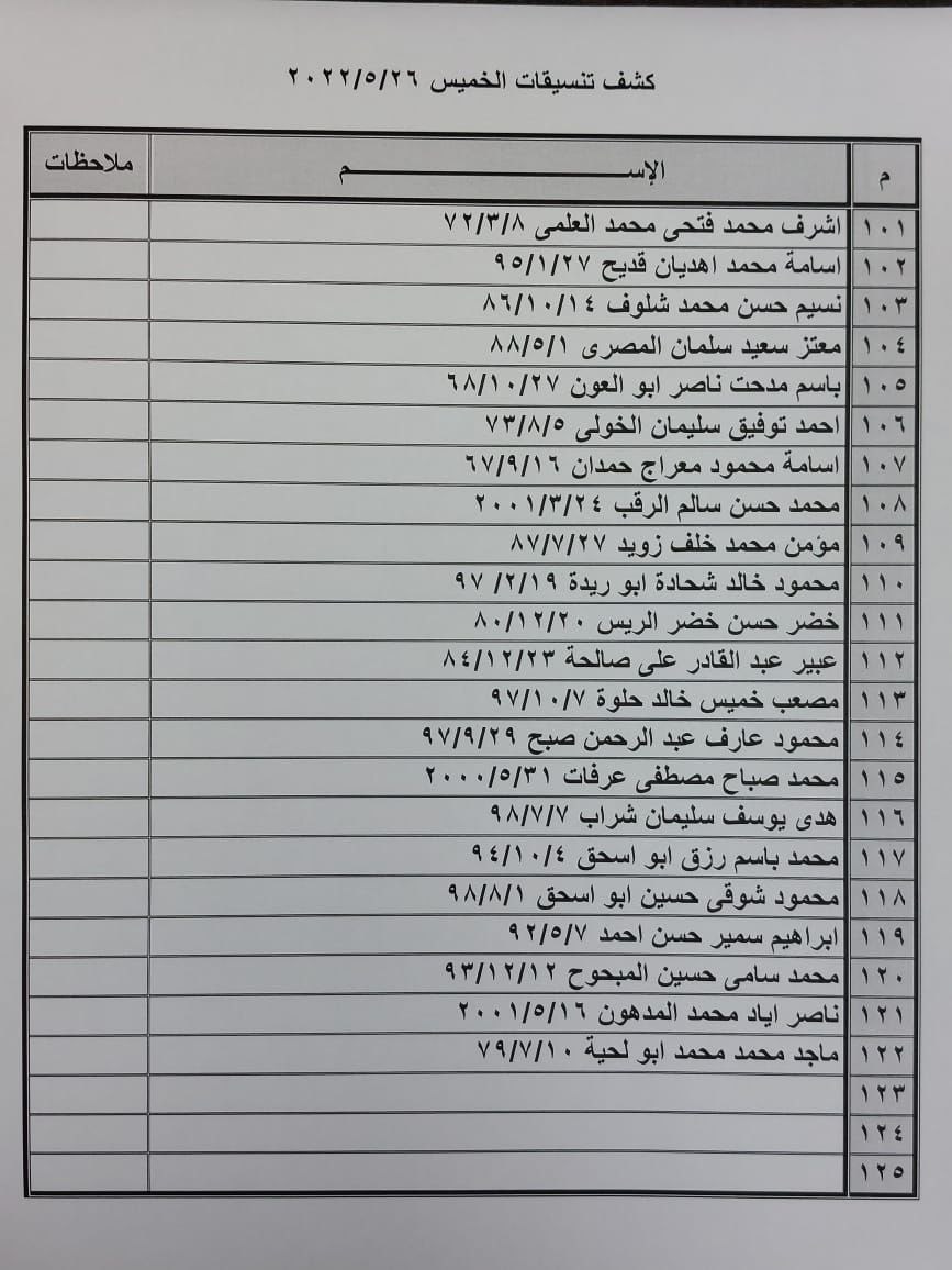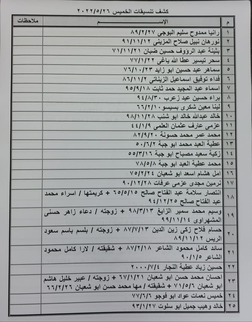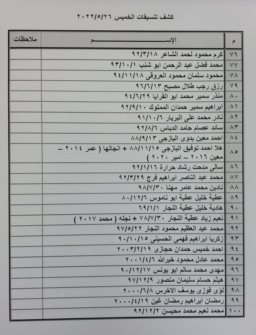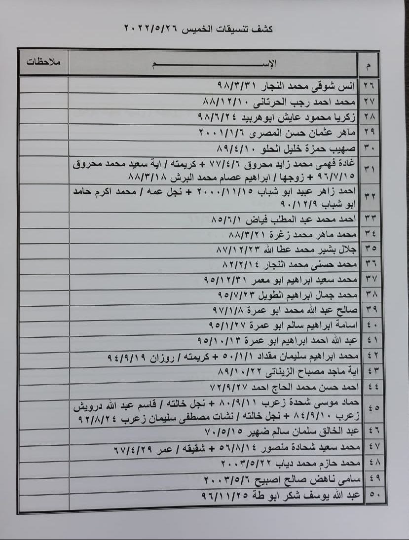 تعلن الهيئة العامة للمعابر والحدود بوزارة الداخلية والأمن الوطني عن وصول كشف "تنسيقات مصرية" للسفر عبر معبر رفح البري يوم الخميس (26 مايو)، والذين عليهم التوجه لإجراء فحص كورونا بدءاً من الساعة 9 صباح الأربعاء في المراكز الصحية المعلن عنها مسبقاً بجميع المحافظات.