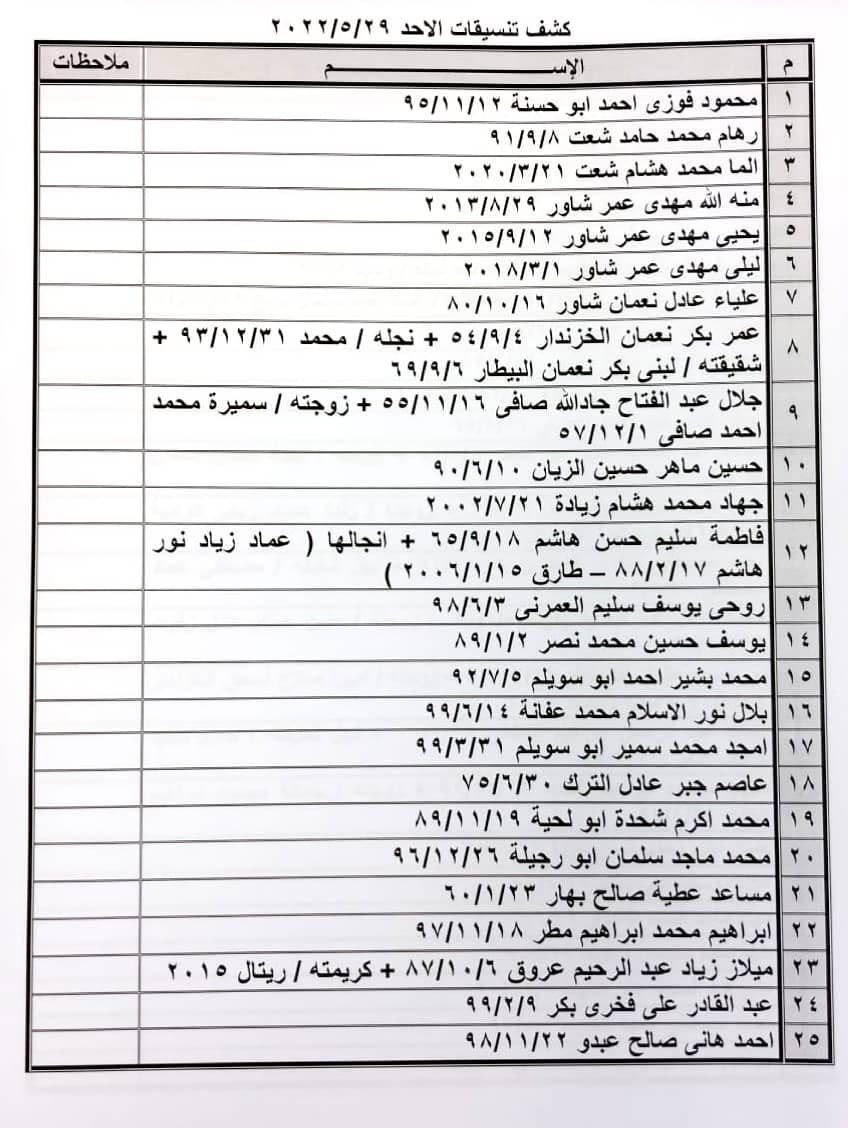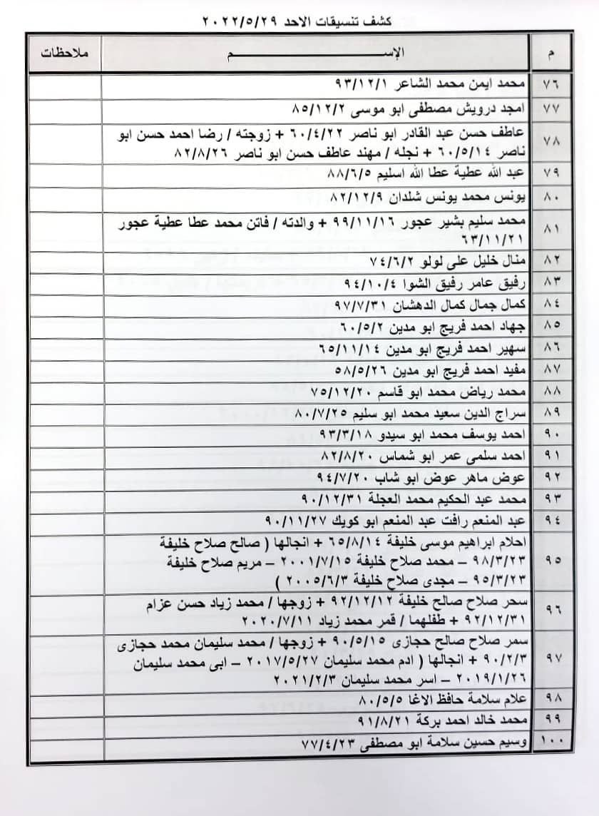 تعلن الهيئة العامة للمعابر والحدود بوزارة الداخلية والأمن الوطني عن وصول كشف "تنسيقات مصرية" للسفر عبر معبر رفح البري يوم الأحد (29 مايو)، والذين عليهم التوجه لإجراء فحص كورونا الساعة 8 صباح الأحد بمركز شـ.ـهداء رفح الصحي ثم التوجه للصالة الخارجية للمعبر لتسهيل سفرهم.