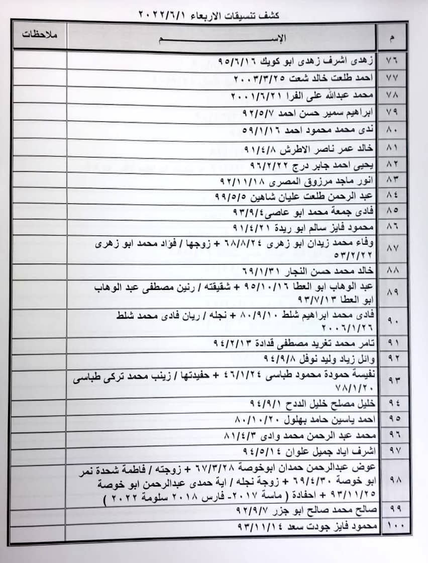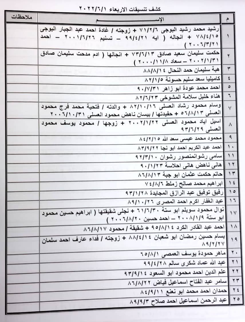 تعلن الهيئة العامة للمعابر والحدود بوزارة الداخلية والأمن الوطني عن وصول كشف "تنسيقات مصرية" للسفر عبر معبر رفح البري يوم الأربعاء (1 يونيو)، والذين عليهم التوجه لإجراء فحص كورونا بدءاً من الساعة 9 صباح الثلاثاء في المراكز الصحية المعلن عنها مسبقاً بجميع المحافظات.