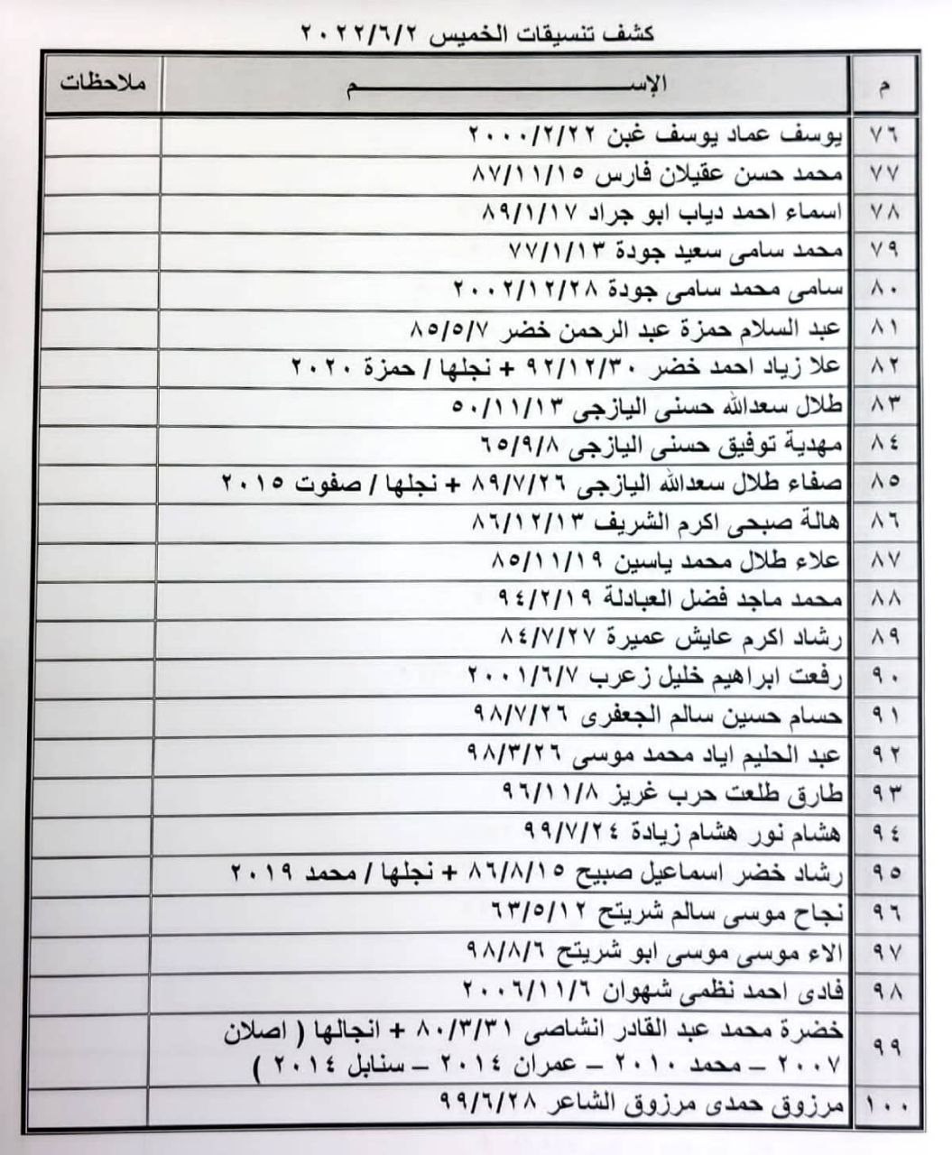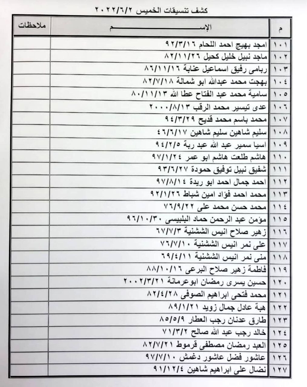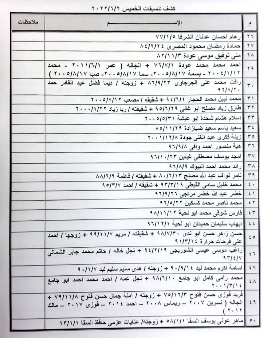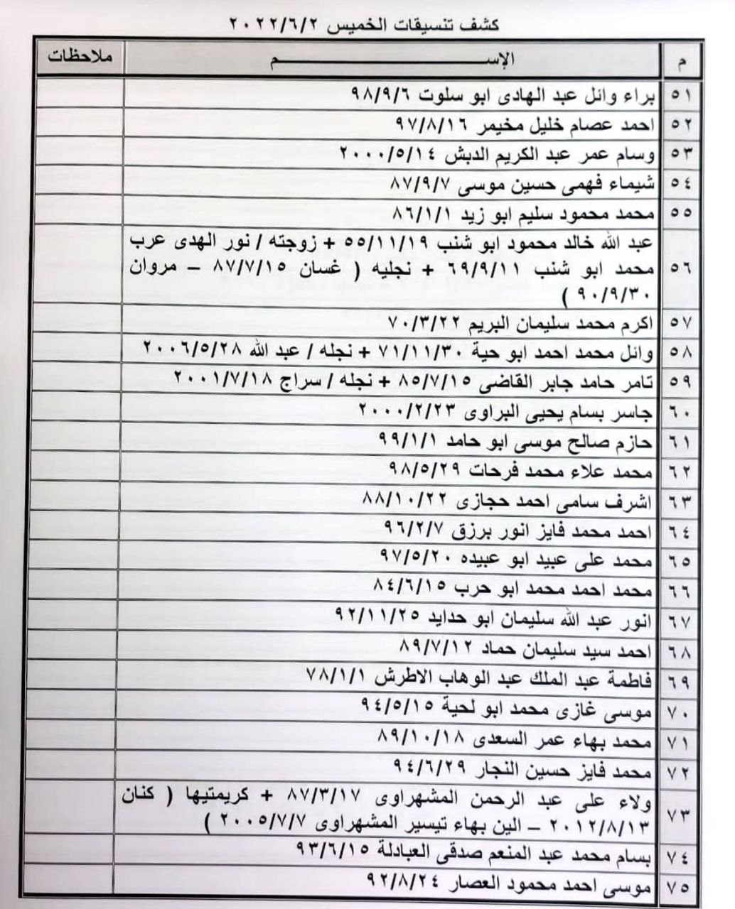 تعلن الهيئة العامة للمعابر والحدود بوزارة الداخلية والأمن الوطني عن وصول كشف "تنسيقات مصرية" للسفر عبر معبر رفح البري يوم غد الخميس (2 يونيو)، والذين عليهم التوجه لإجراء فحص كورونا بدءاً من الساعة 9 صباح اليوم في المراكز الصحية المعلن عنها مسبقاً بجميع المحافظات.