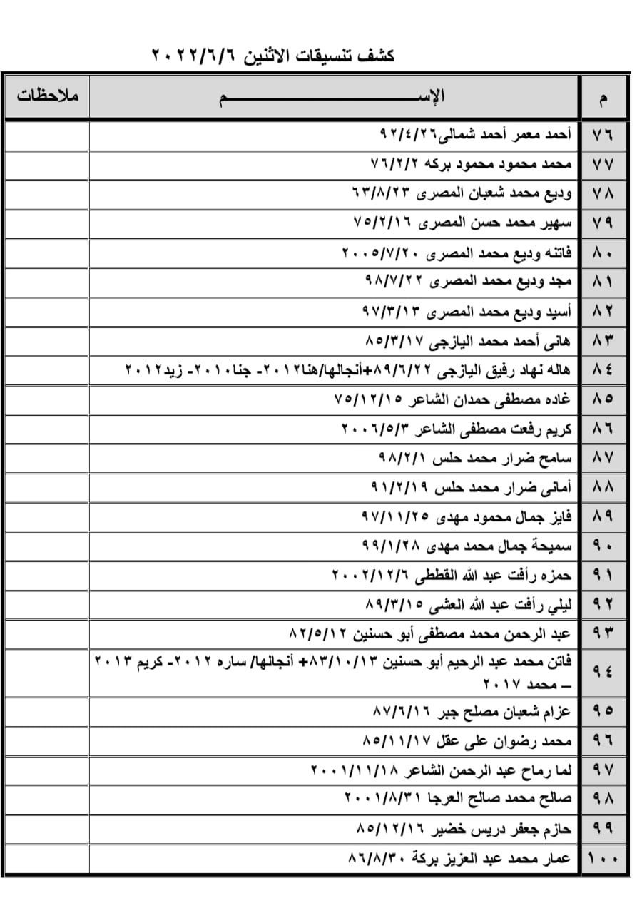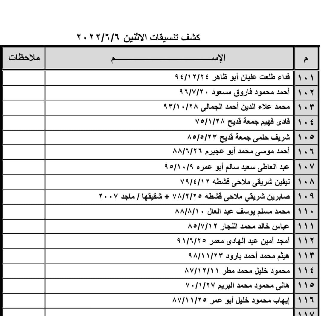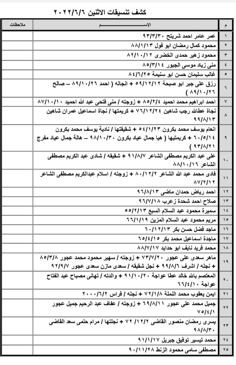 تعلن الهيئة العامة للمعابر والحدود بوزارة الداخلية والأمن الوطني عن وصول كشف "تنسيقات مصرية" للسفر عبر معبر رفح البري يوم غد الإثنين (6 يونيو)، والذين عليهم التوجه لإجراء فحص كورونا بدءاً من الساعة 9 صباح اليوم في المراكز الصحية المعلن عنها مسبقاً بجميع المحافظات.