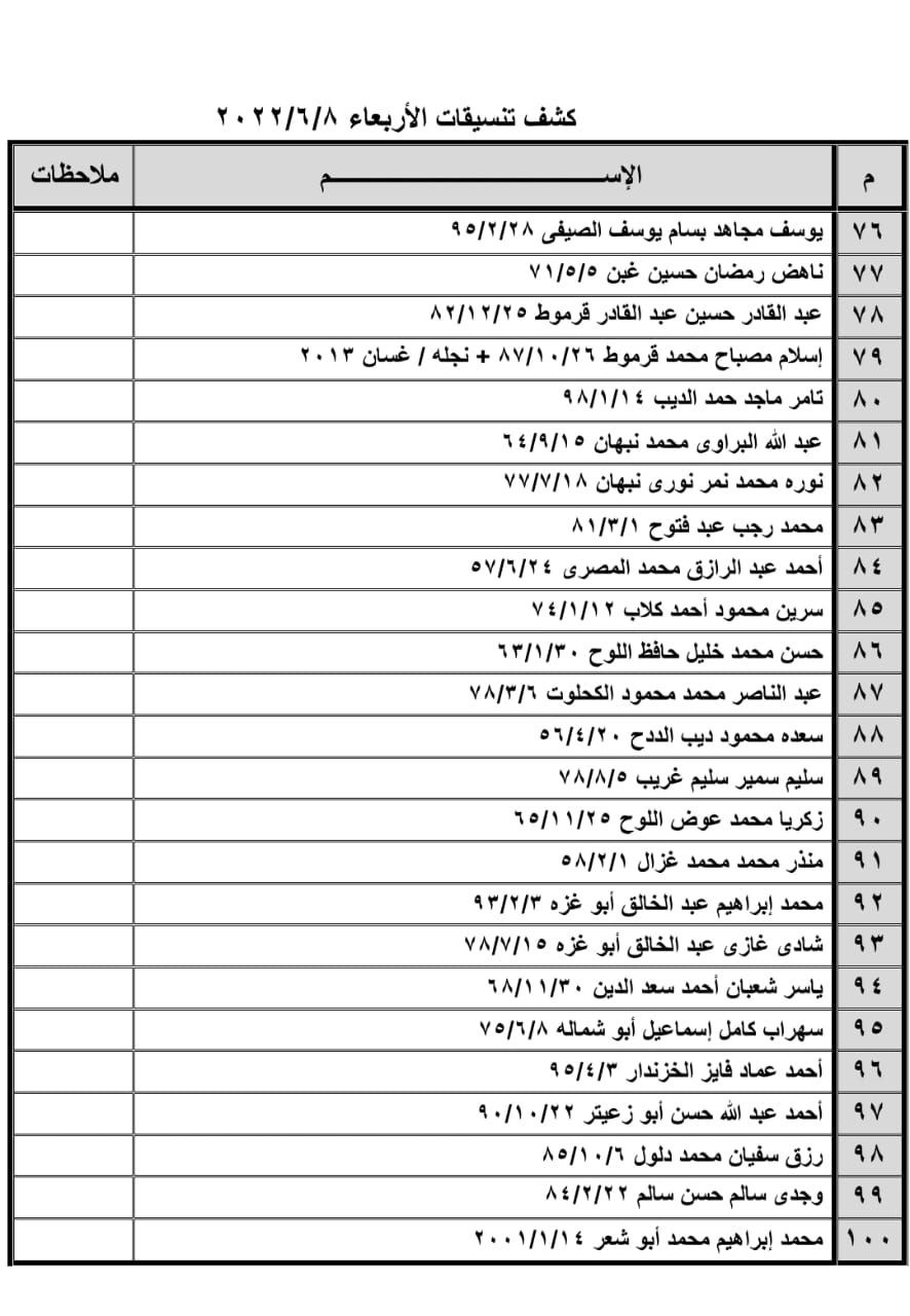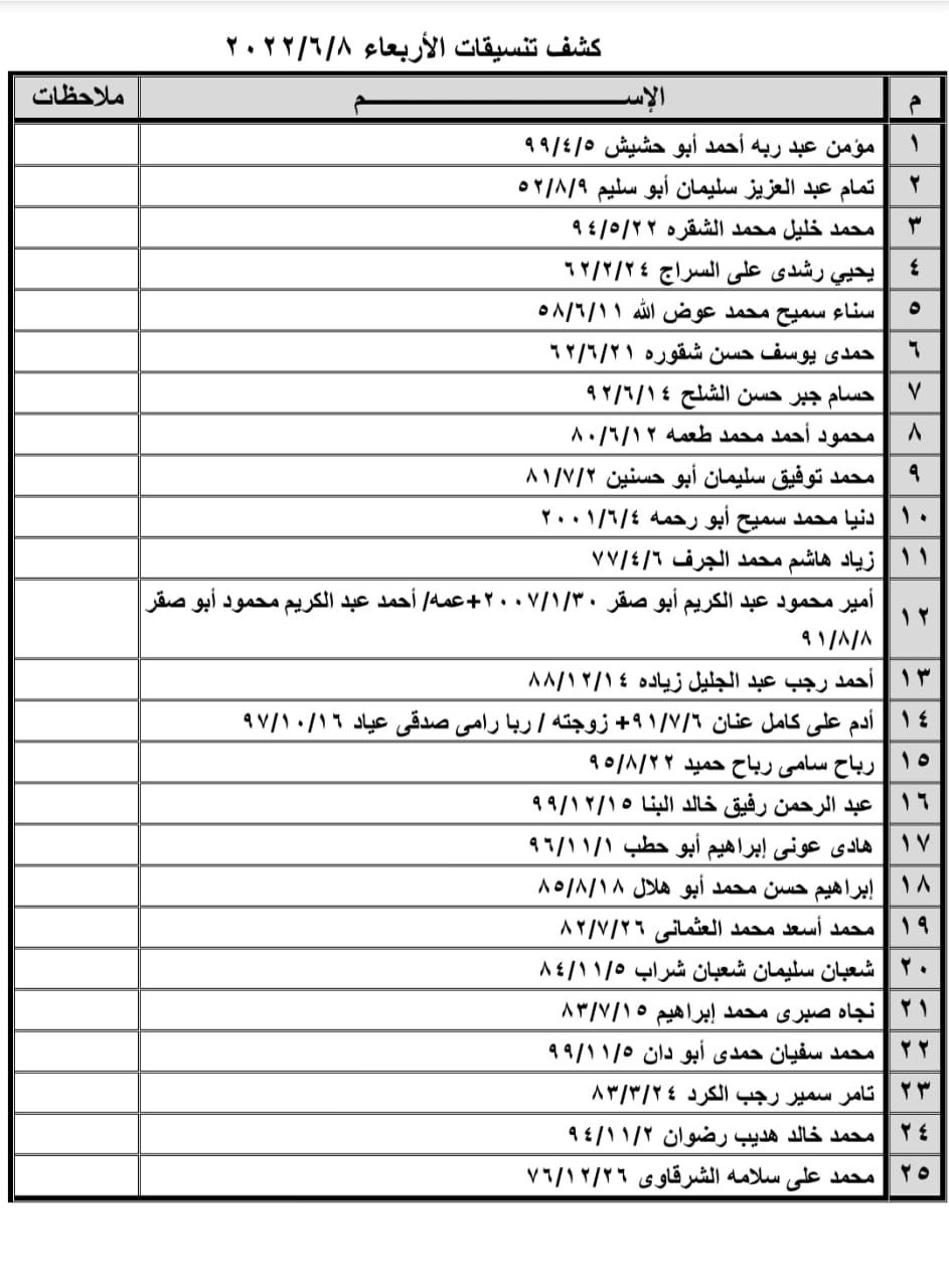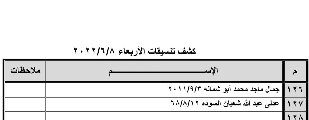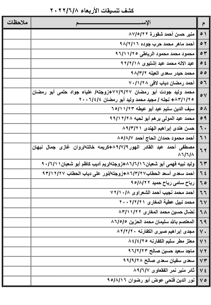 تعلن الهيئة العامة للمعابر والحدود بوزارة الداخلية والأمن الوطني عن وصول كشف "تنسيقات مصرية" للسفر عبر معبر رفح البري يوم الأربعاء (8 يونيو)، والذين عليهم التوجه لإجراء فحص كورونا بدءاً من الساعة 9 صباح غد الثلاثاء في المراكز الصحية المعلن عنها مسبقاً بجميع المحافظات.